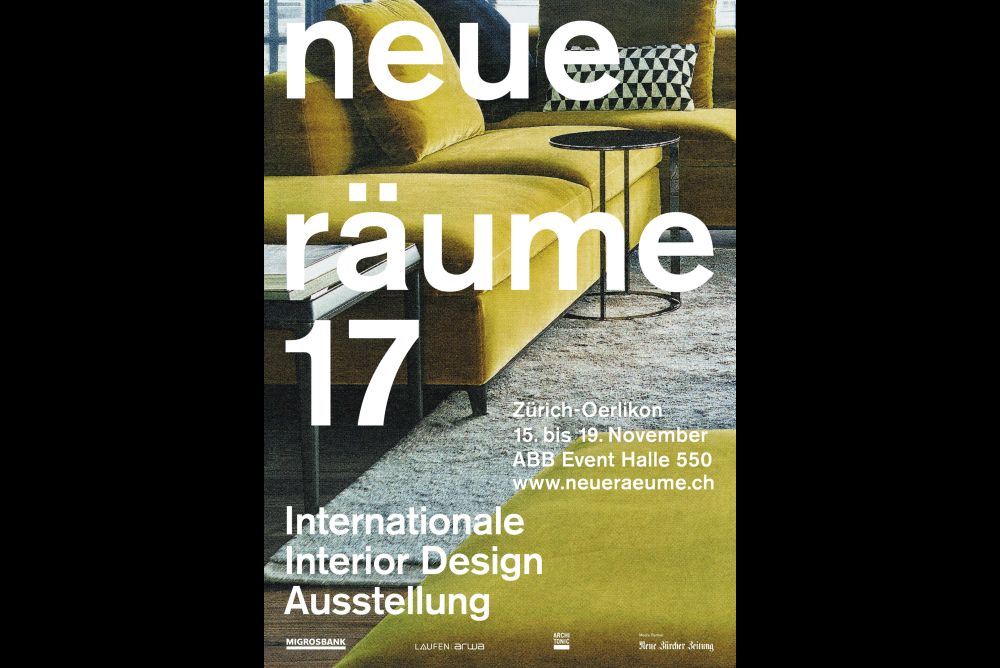 Vom 15. bis 19. November 2017 öffnet die Design-Messe «Neue Räume» ihre Tore und präsentiert in der Zürcher ABB Halle auf 8’000 Quadratmetern aktuelle Trends der Innenarchitektur. Bei der neunten Auflage der Designplattform sind mehr als 100 nationale und internationale Aussteller zu sehen.