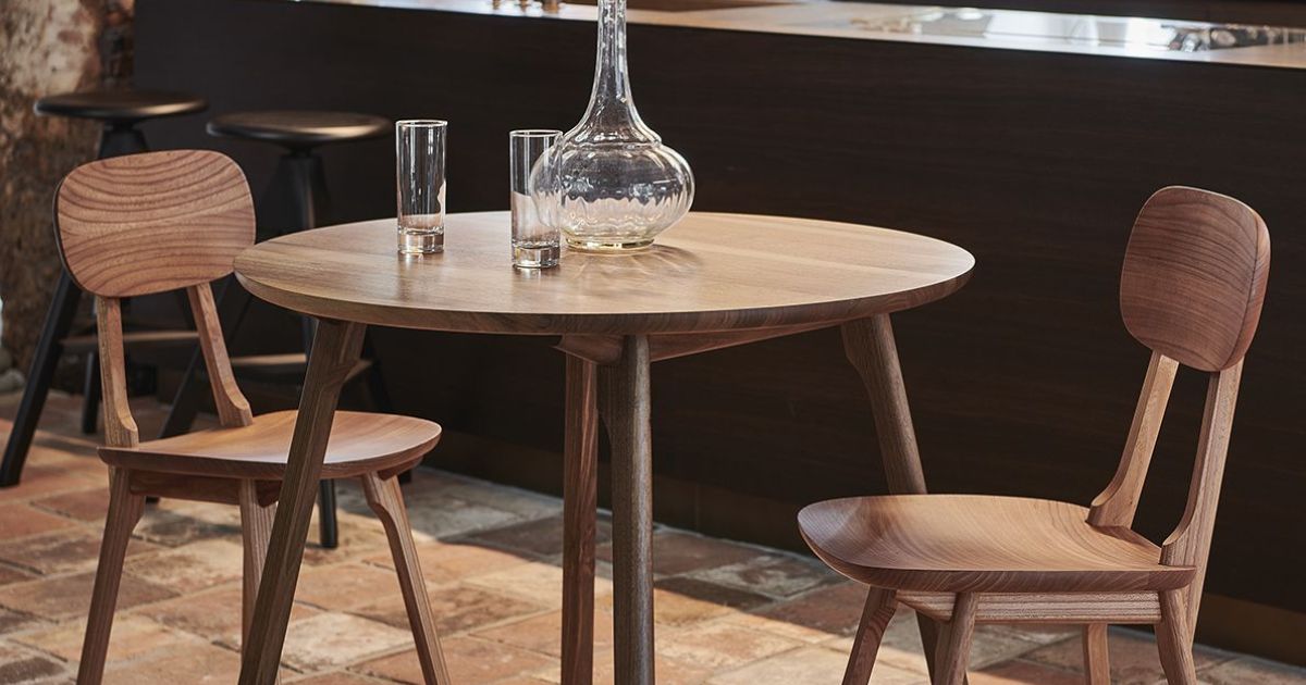 Auch an der Blickfang vertreten: Der Allschwiler Tisch mit komfortablem Massivholzstuhl. Bild: Thismade