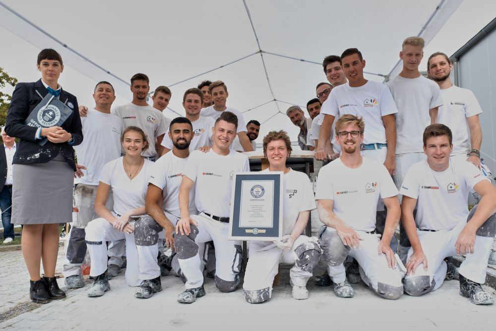 Versuch. Am Freitag, 13. September gelang dem Nationalteam der deutschen Stuckateure in Berlin ein neuer Weltrekord. Damit toppten sie den inoffiziellen Rekord aus dem Jahr 2010, welcher von den Schweizer Gipsern aufgestellt wurde.