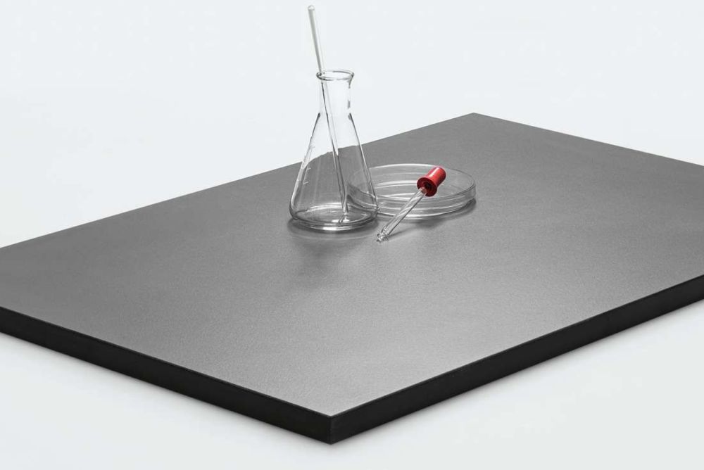 Die Laborplatte «Max Compact Resistance 2» von Fundermax erfüllt die hohen Anforderungen an Hygiene und Sauberkeit in Laboren, Krankenhäusern, Reinräumen und in der Lebensmittelindustrie. Die Platte zeichnet sich durch chemische Beständigkeit und einen hohen mechanischen Widerstand aus. Mit einer Vielzahl an erhältlichen Dekoren steht auch der Gestaltungsfreiheit im Laborbau nichts mehr im Weg. Für die hochbeständige Laborplatte stehen insgesamt 13 Dekore zur Auswahl, darunter der neue Uni-Farbton Vulkangrau.