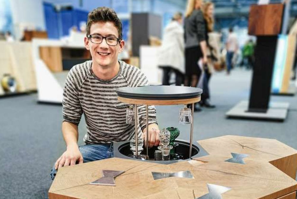 Basil Zwicker hat einen Salontisch mit einer Bar, die rausgedreht werden kann, gebaut. Bild: Nicole D’Orazio