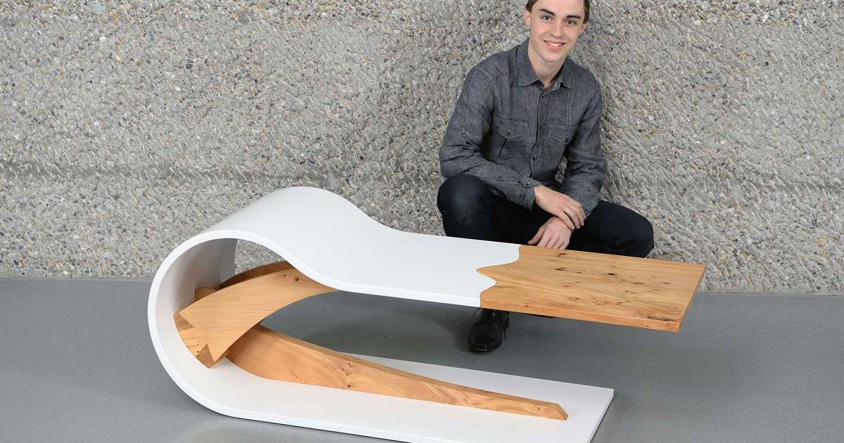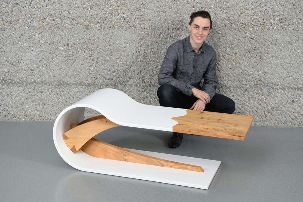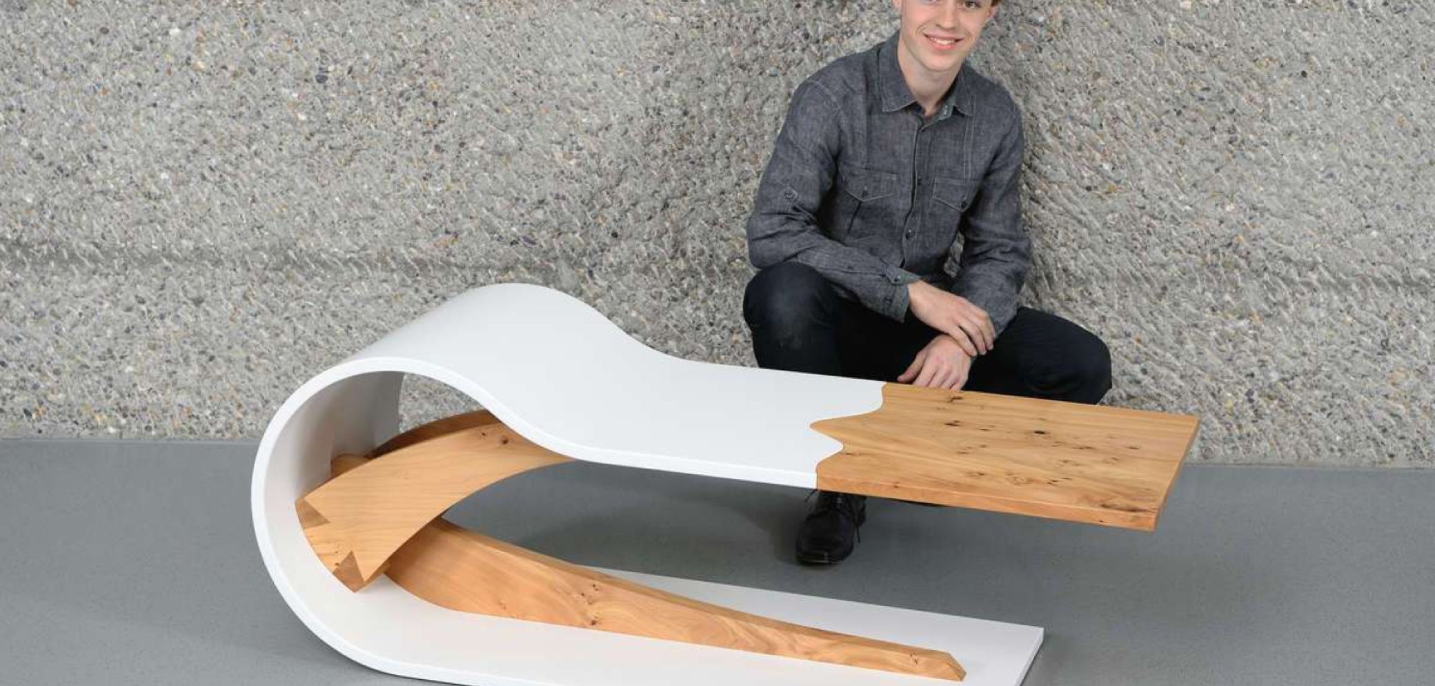 «Schreiner Chance 17» stand unter dem Motto «Klein mit grosser Wirkung». In dem, was sie herstellten, waren die Lernenden im dritten Lehrjahr völlig frei – nicht jedoch bei den Massen. So durfte das Objekt nicht länger als 1,50 Meter sein, maximal über eine Grundfläche von 0,6 m2 verfügen, höchstens 50 Kilo wiegen und nicht mehr als 30 Arbeitsstunden beanspruchen. Dazu mussten alle noch eine Dokumentation zu ihrer Arbeit gemäss Vorlage, eine Werkzeichnung, eine Werkstoffliste mit sämtlichen Beschlägen sowie Zeitplanung und -rapport abgeben. All dies gelang nach Ansicht des Preisgerichts Flavio Zehnder (Hugentobler AG, Braunau) am besten. Für seinen «Curved Table» errang er nicht nur den 1. Preis der Hauptkategorie «Fachjury», sondern obsiegte auch noch in den weiteren Kategorien «Schreiner» und «Schreinermeister». Den zweiten Rang belegte Stefan Krüger (Knaus + Berchtold AG, Neukirch an der Thur) mit seiner elektrischen Gitarre, derweil sich mit Nathalia Hofmann (Kocherhans AG, Kreuzlingen) mit ihrem dreiteiligen Klapptischchen und Andrea Bommer (Alois Zehnder Möbelfabrikation Schreiner, Ettenhausen) mit ihrem Wein-Karussell zwei junge Schreinerinnen den dritten Rang teilten. Der Publikumspreis ging an Tobias Brunner für seine überdimensionierte Armbanduhr.