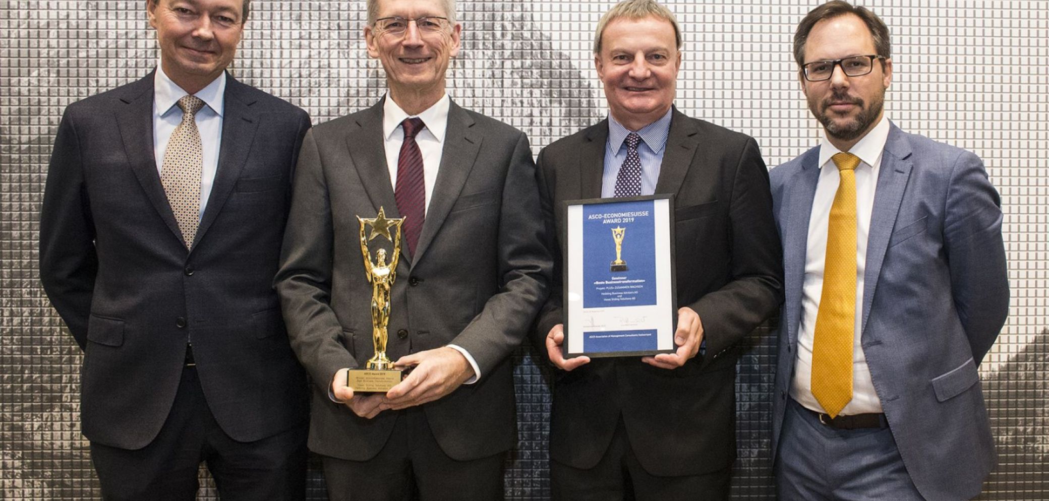 Der ASCO Award wird von ihr seit über zehn Jahren verliehen. Dabei bewerben sich Schweizer Beratungsunternehmen gemeinsam mit ihren Kunden. Das federführende Beratungsunternehmen bei der Fusion zur Hawa Sliding Solutions AG war die Helbling Business Advisors. Deren Vertreter konnten den Preis zusammen mit dem Hawa Verwaltungsratspräsident Andreas Meyer entgegennehmen.