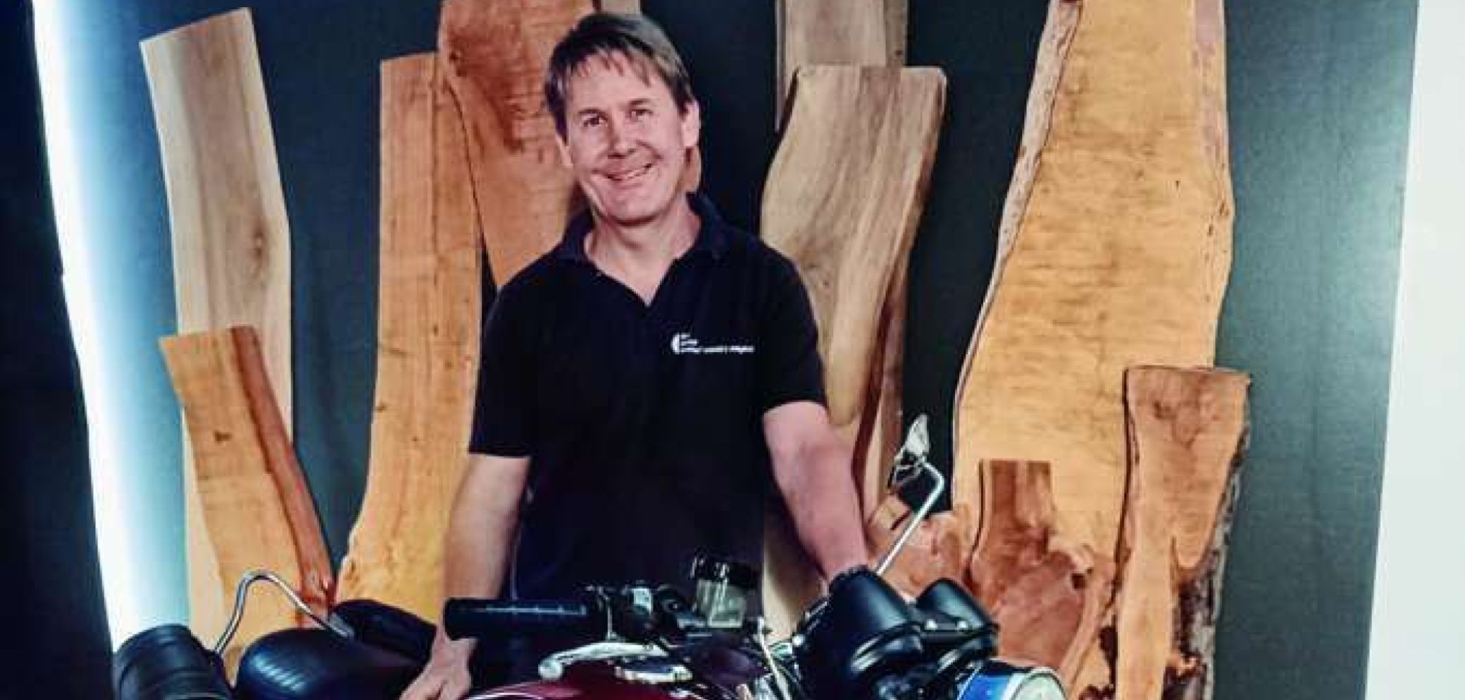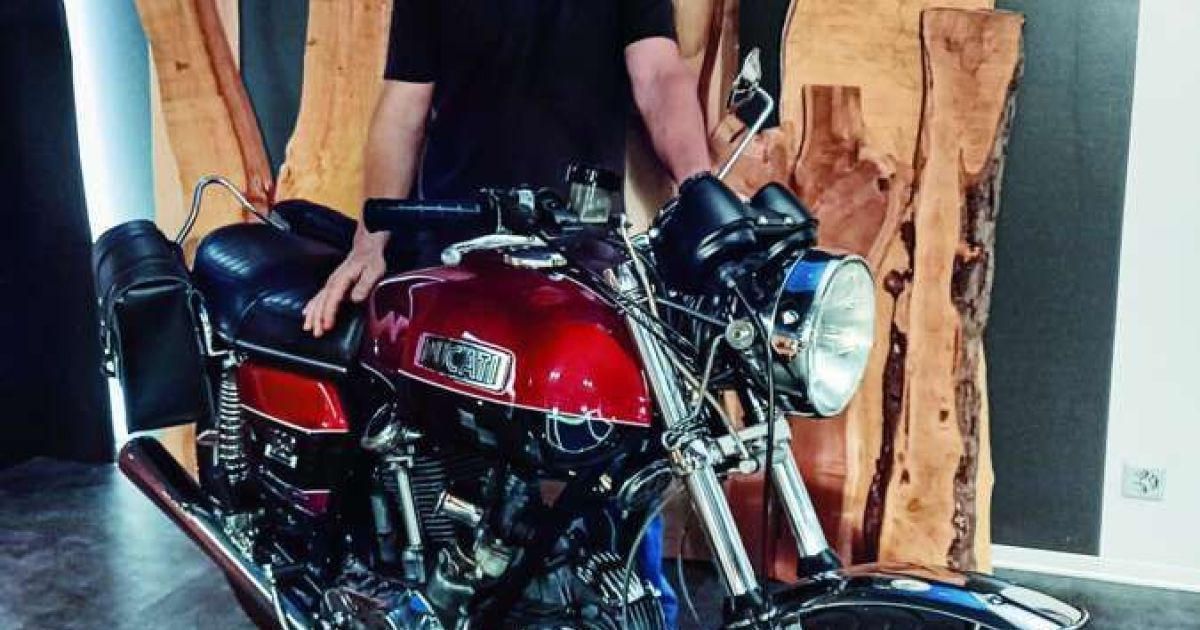 Thomas Wildling (53)mit einer seiner Ducatis. Der Schreiner fand beim «Mechen» an seinen Maschinen sein kleines Glück – und aus seinem Burn-out heraus. Bild: Isabel Hempen