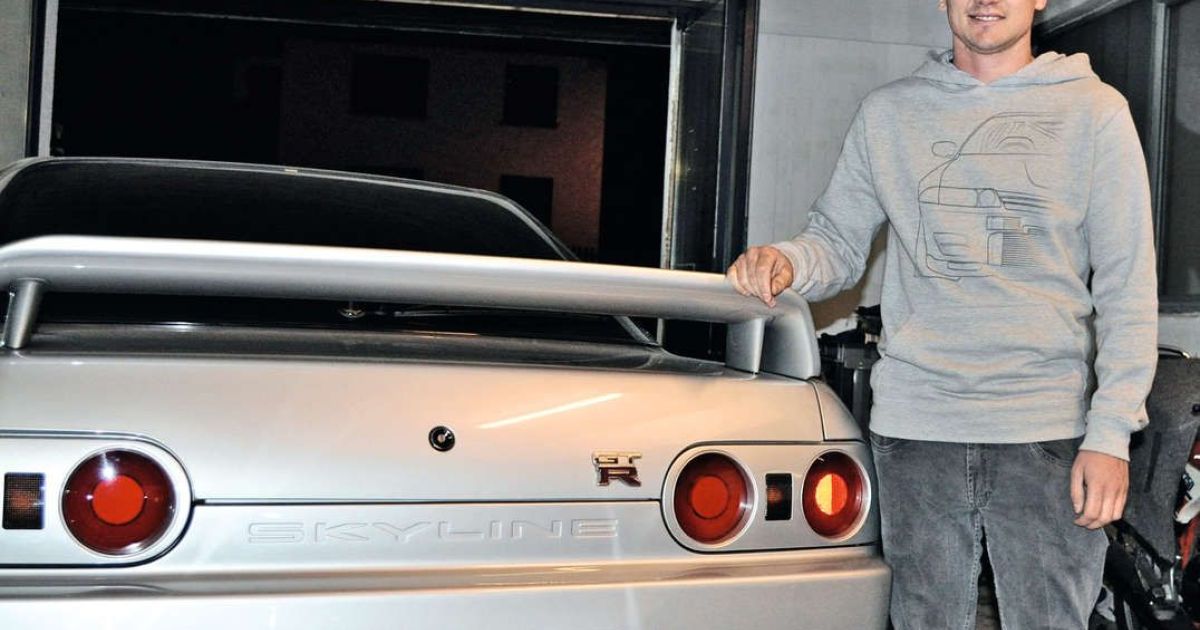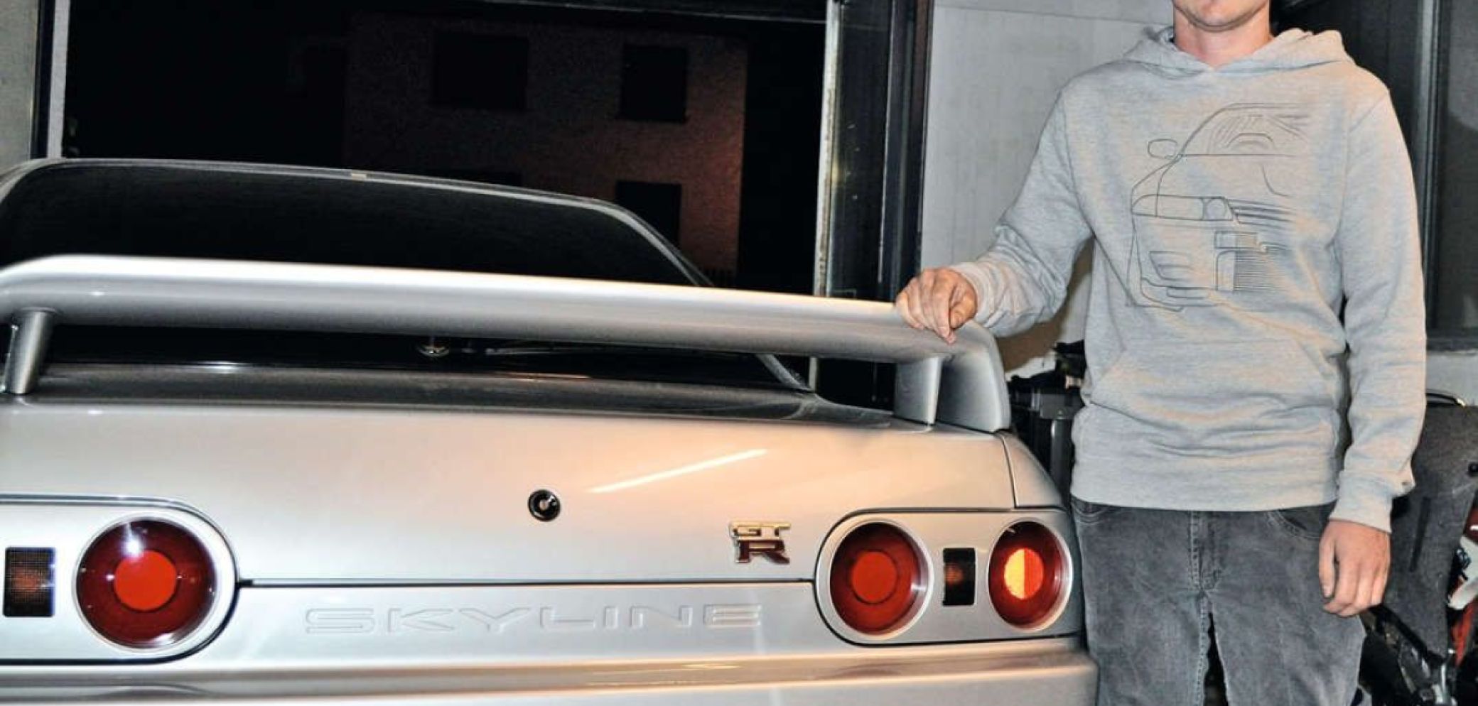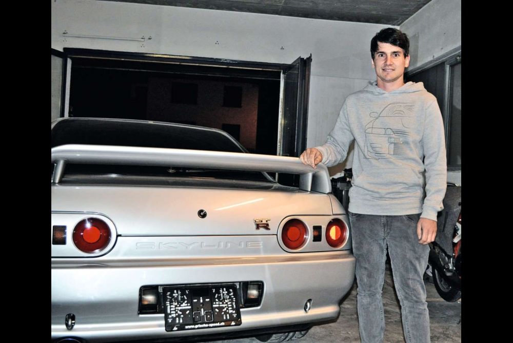 Lucas Schnoz (32) präsentiert seinen Nissan Skyline GTR R32. Der Schreiner hat das Kultauto der 90er aus Japan importieren lassen. Bild: Franco Brunner