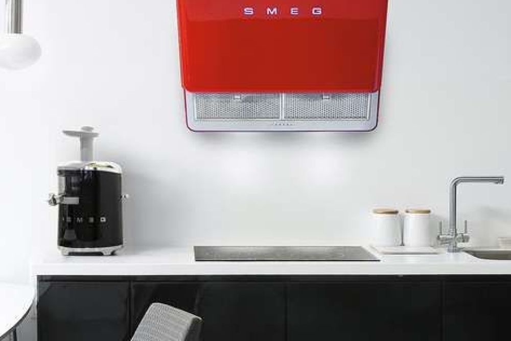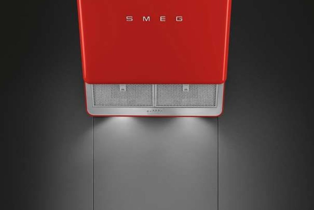 Das Unternehmen Smeg ist bekannt für seine Küchengeräte im Designlook der Fünfzigerjahre. Mit der Wandhaube im Retrostyle bietet der Hersteller ein 75 cm breites Gerät mit Randabsaugung. Die Filteröffnung ist motorisch ausfahrbar, und je nach Bedarf können drei Leistungsstufen ausgewählt werden. Die lackierte Gerätefront ist in Schwarz, Rot, Creme, Weiss oder mit dem Union Jack erhältlich, und alle Applikationen sind aus Edelstahl.