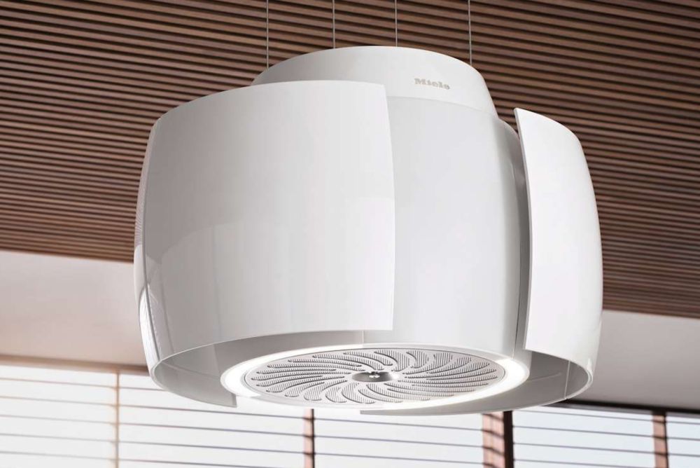Die neue Dunstabzugshaube «Aura 4.0 Ambient» von Miele verbindet die Lüftungstechnik mit einer individuellen Lichtstimmung und Regulierung der Luftfeuchte. Zusätzlich enthält sie – einzigartig im Markt – eine Raumdufteinheit mit drei Aromen. Das Dufterlebnis hält gegen 150 Stunden lang. Die Düfte «French Bakery» und «Minty Fields» sind mit der Technologie «FreshplexTM» ausgerüstet, die unerwünschte Gerüche, die zum Beispiel beim Schneiden von Zwiebeln entstehen, zuverlässig neutralisiert. Der runde Haubenkörper öffnet sich beim Einschalten zu einer ovalen Form, wodurch sich der Ansaugraum vergrössert. Ein Spezialfilter adsorbiert einen Teil der Feuchtigkeit aus der abgesaugten Luft und gibt diese später wieder an die trockene Raumluft ab.