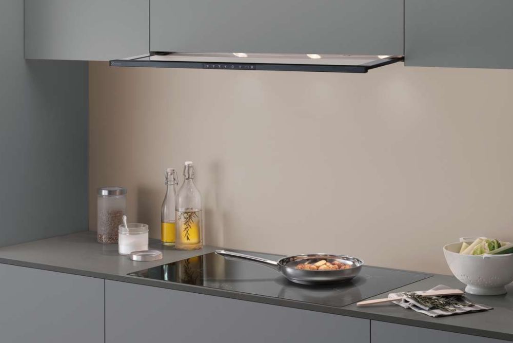 Neben dem herkömmlichen Abzug, der in einem Oberschrank Unterschlupf findet, und den klassischen Wandhauben aus Edelstahl gibt es heutzutage unzählige weitere Interpretationen. Diese schweben erhaben über der Kochinsel, sind praktisch unsichtbar in der Küchendecke eingelassen oder sitzen sogar direkt im Kochfeld. Die Hersteller erweitern diese Vielfalt zusätzlich mit einer grossen Auswahl an Materialien und Farben. Besonders wenn man sich für die immer häufiger eingesetzten, kleineren Dampfabzüge entscheidet, gilt es, ein Augenmerk auf Qualität, Materialien, Oberfläche und die Technik zu legen.