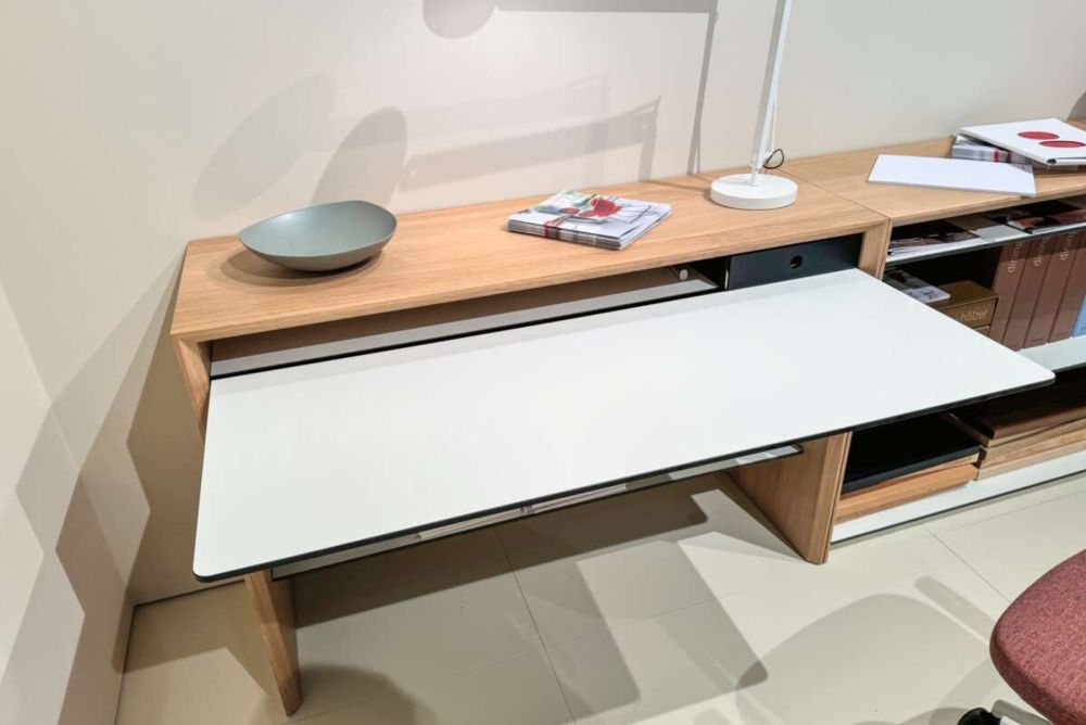 Die Einrichtungsmesse zeigte, dass Flexibilität, nachhaltige Ästhetik, Natur als Inspiration sowie minimalistische Gestaltung im Trend liegen. Im Homeoffice verschmelzen die Grenzen zwischen Wohn- und Arbeitsbereich zunehmend. Die Firma Girsberger aus Bützberg BE bietet mit «La Punt» ein Sideboard an, das sich dank aufklappbarer Ablage zum Arbeitstisch umfunktionieren lässt. Das deutsche Unternehmen Balolo produziert smarte PC-Möbel. Dank einem modularen System lassen sich Zubehörteile wie Kopfhörer- oder Handyhalter einfach an den bestehenden Montagepunkten anschrauben und auf die individuellen Bedürfnisse anpassen.