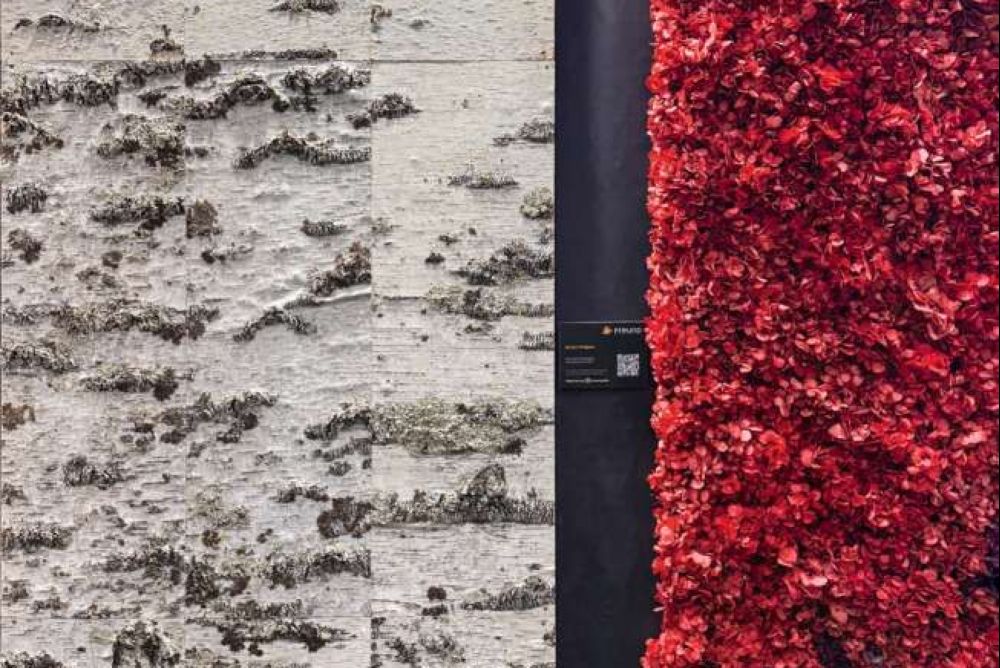 Nicht nur von der Natur inspiriert, sondern ganz natürlich sind die Produkte der Firma Freund aus Berlin. Die von Hand gepflückten Moose und geschälten Korkrinden lassen sich auf Trägerplatten montieren und fungieren so als Akustikelement. Neu sind die Blütenbilder aus Hortensien. Sie werden gesteckt auf einer MDF-Platte geliefert.