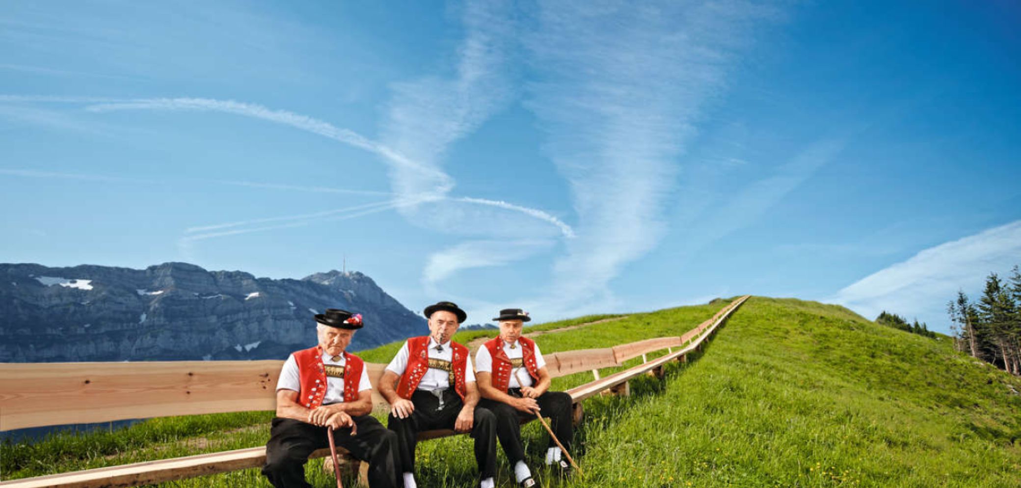 Bild: Appenzeller Käse GmbH Die Schweiz, genauer das Appenzellerland, hält den Weltrekord für die längste Bank der Welt. Was das mit Käse zu tun hat? Beides dient dem Wohl von Leib und Seele.
