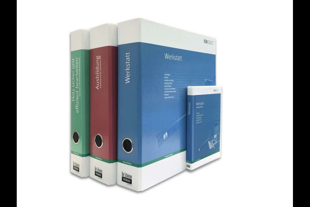 Die drei Ordner «Ausbildung», «Holz sicher und effizient bearbeiten» und «Werkstatt» sollten in jeder Schreinerei im Gestell stehen. Der Werkstattordner ist gegliedert in die Themen: Grundlagen/Arbeitssicherheit, Reissnormen, Arbeiten von Hand, Handmaschinen, Verbindungen, Furnieren und Belegen, Oberflächenbehandlung, Montage und Andere Materialien. Er wird ergänzt durch eine DVD mit lehrreichen Filmsequenzen. Alle drei Hilfsmittel sind im Schreinershop erhältlich.