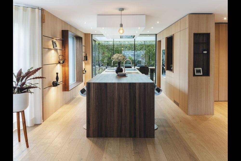 Als besten Küchenumbau prämierte die Jury das Projekt Black ist beautiful, eingereicht von den NW/A Niedermann Walti Architekten aus Zürich, ausgeführt von der Moser Küchen AG aus Appenzell. Die ehemals geschlossene Küche wurde zu einer offenen Wohnküche mit Inselelement umgebaut. In edlem schwarz mit goldenen Akzenten fügt sie sich nahtlos in die bestehenden Strukturen des denkmalgeschützten Einfamilienhauses ein.
