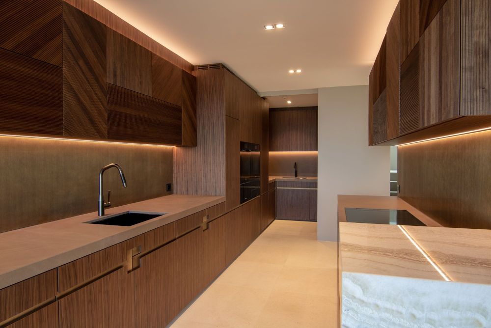 Neben dem Publikumspreis wurde auch der Fachjury-Award vergeben. Der Award für die schönste Küche ging an das Projekt Criss-Cross der Itel AG Innenausbau aus dem thurgauischen Basadingen. Der englische Begriff Criss-Cross steht für eine Schraffur, bedeutet aber auch kreuz und quer. Zwei Begriffe, welche die Relieffronten in Nussbaum kurz und prägnant auf den Punkt bringen. Das harmonische Erscheinungsbild der Küche wird abgerundet durch die, mit brüniertem Messing hinterlegten Griffprofile.