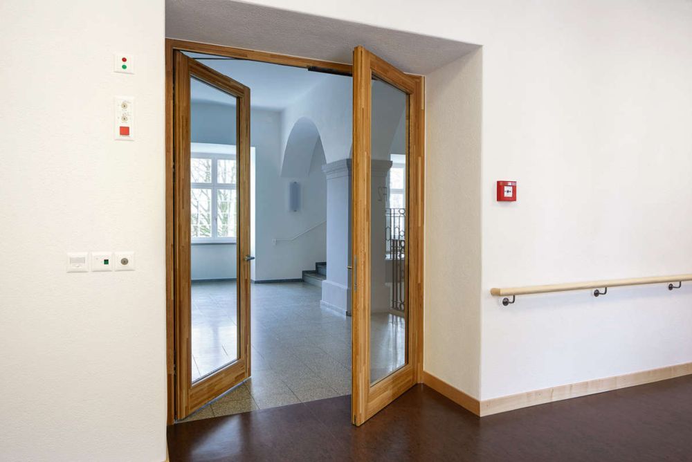 Eine gegenläufige Doppeltür ist eine Spezialität, die fast nur mit einer Blockrahmentür möglich ist. Bild: Frank Türen AG