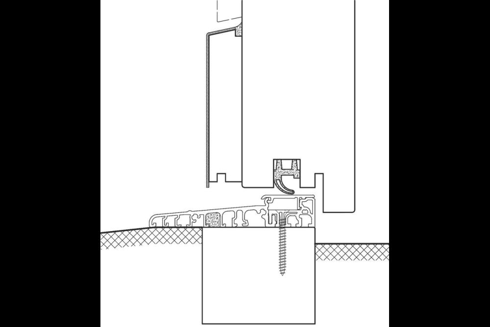 Um keine Schall- oder Kältebrücke über dem Boden zu erhalten, sollte ein Kantholz als Platzhalter gesetzt werden, bevor der Estrich eingebracht wird. So lässt sich später der Rahmen gut einfahren.