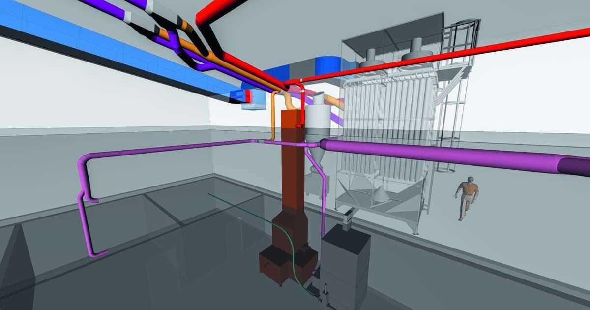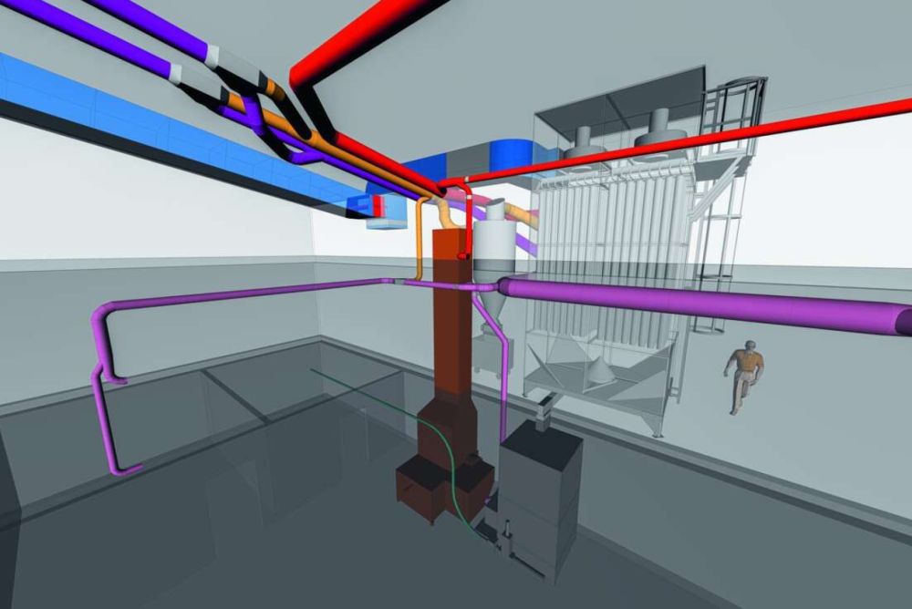 Layout der Planung einer Absauganlage mit getrennten Strängen für unterschiedliche Späne. Illustration: Fuchs Aadorf GmbH