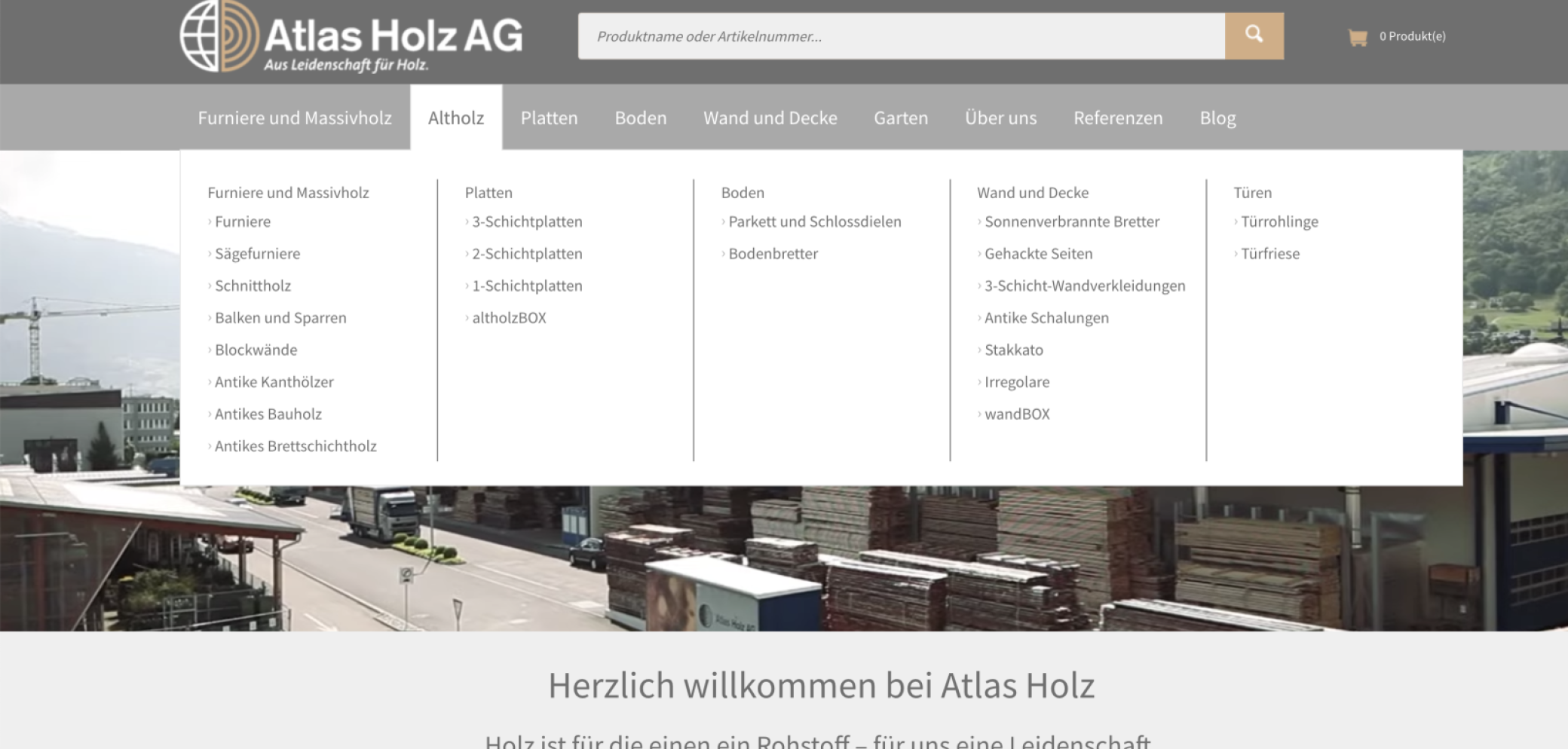Webshop der Woche. Auf der Internetseite der Atlas Holz AG in Trübbach (SG) kann nahezu jedes Produkt aus den verschiedenen Holz- und Holzwerkstoffkategorien auch online bestellt werden.