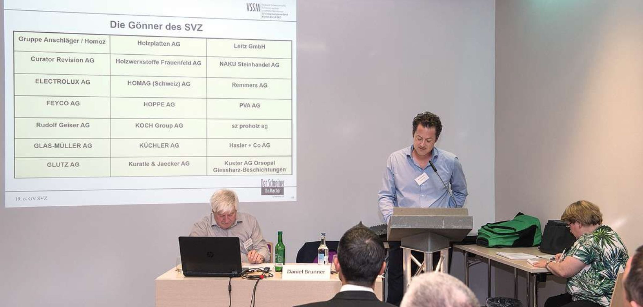 Als Vertreter des Zentralvorstands nahm VSSM-Direktor Mario Fellner an der Versammlung teil. Er informierte die Anwesenden über das Verbandsjahr 2019. Die Schwerpunkte liegen auf der VSSM-Fachanlass-Serie zum Thema Schallschutz und Raumakustik (siehe Seite 27), auf der Teilnahme an der Messe Holz 2019 im Herbst und auf dem Jubiläum der HF Bürgenstock. Fellner dankte, speziell für die Vorbereitung der DV in Zürich Oerlikon, und überliess die Bühne dem Duett Complett.