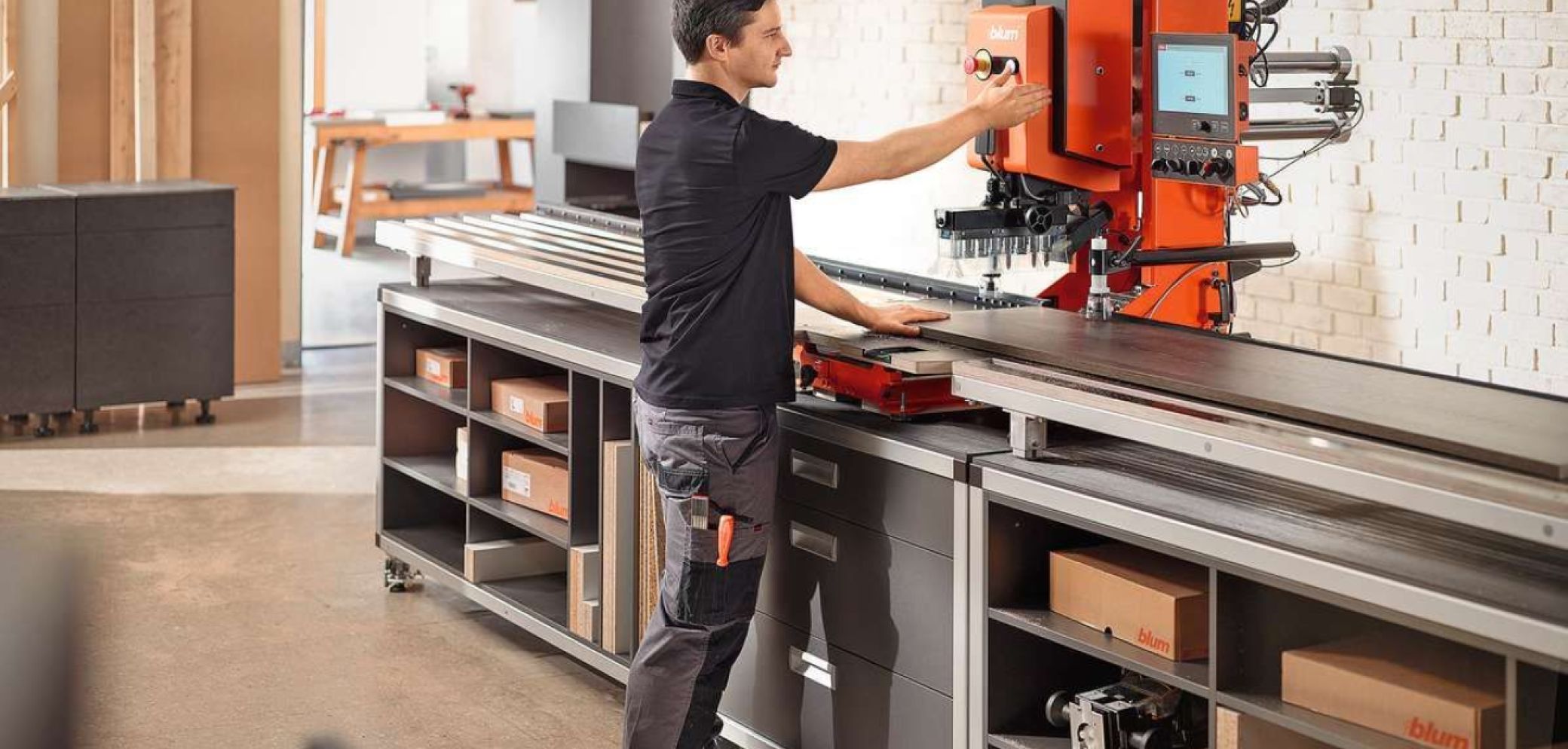 «Minipress top» heisst die neue Generation der Bohr- und Beschlagsetzmaschinen von Blum. Das Gerät lässt sich komfortabel und einfach bedienen. Es erlaubt die Bearbeitung kompletter Korpusse. Eine Ausladung von 350 mm ermöglicht es, sogar Mittelreihen zu bohren. Das optionale Horizontalbohrwerk hilft, noch mehr unterschiedliche Bohroperationen auf einer Maschine auszuführen. Somit entfallen aufwendige Maschinenwechsel. Mit wenigen Handgriffen sind Bohrköpfe und Lineale werkzeuglos montiert, digitale Anzeigen für Bohrtiefe und Einbohrmasse erleichtern die Einstellung. Gerade Betriebe mit engen Platzverhältnissen profitieren von der Verarbeitungshilfe.