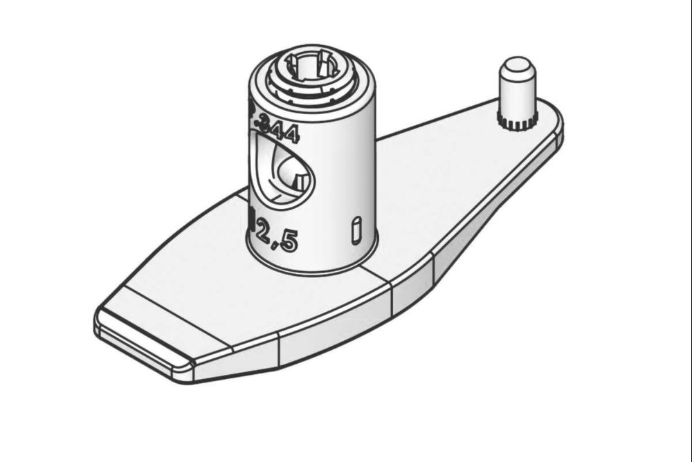 Der Einbohrbeschlag «316» hat mit 12 mm einen höheren, rechteckigen Fuss. Direkt an ihm kann mit einem Inbusschlüssel die Höhe verstellt werden. Somit lässt sich der Korpus von aussen ausnivellieren, solange er von der Seite zugänglich ist. Wie beim Modell «306» gibt es mehrere Zylinderlängen, wobei der Längste davon eine Hubhöhe von 15 mm erlaubt.