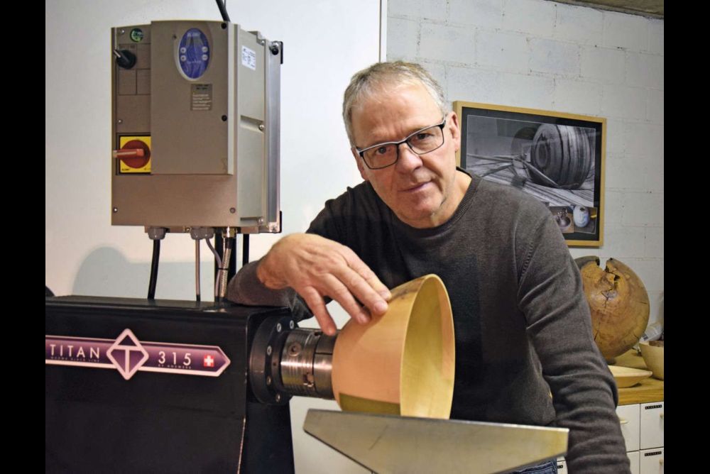 Spricht Jörg Scheurer über das Drechseln, zieht stets ein Lächeln über sein Gesicht. «Drechseln macht glücklich», sagt er. Wenn er am Wochenende in den Keller hinabsteigt und den Startknopf der Drechslermaschine drückt, wenn Späne fliegen und der Hobbyraum sich mit dem Duft von Nussbaum-, Buchen-, Apfel- und Kirschbaumholz füllt, kann er abschalten und den Alltagsstress hinter sich lassen. «Dann bin ich einfach ganz zufrieden in meiner Welt.»