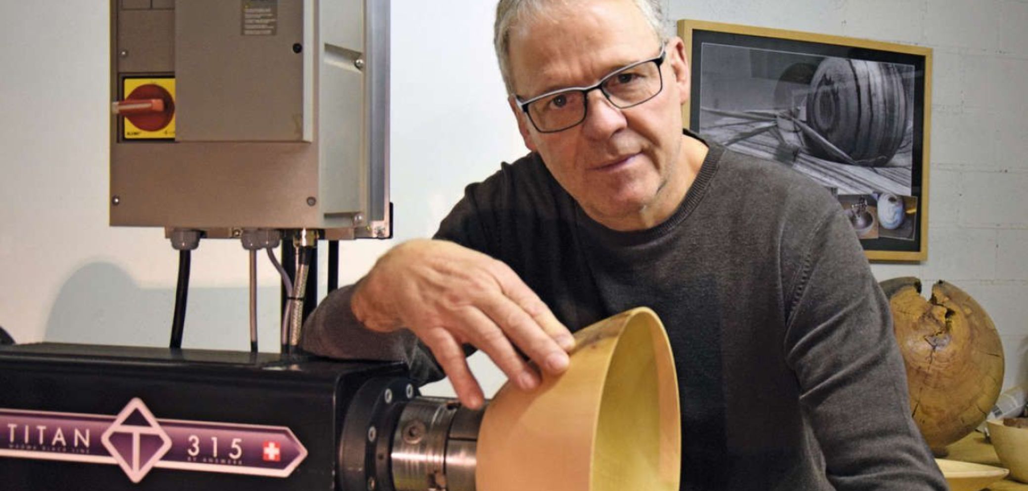 An der Drechselbank kann sich der 60-jährige Schreiner Jörg Scheurer vom Alltagsstress erholen.