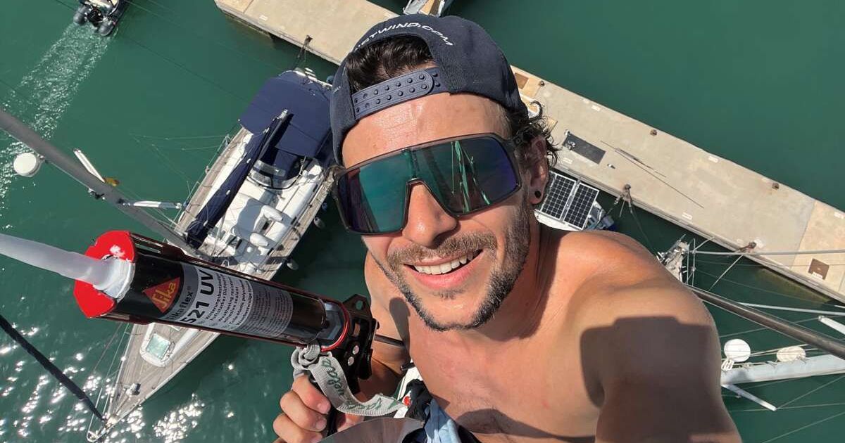 Wer über den Atlantik will, muss auch mal ganz nach oben. Lukas Sutter (29) dichtet eine Stelle am Masten ab. Inzwischen kennt er jede Schraube am Boot. Bild: Lukas Sutter
