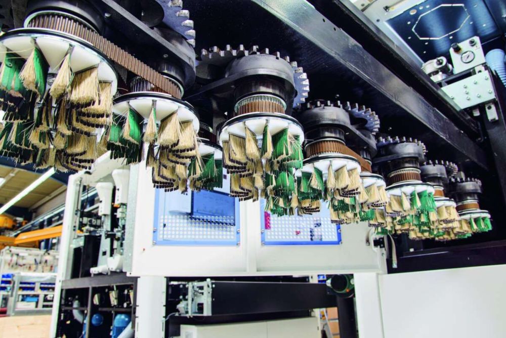 Schleifen alleine reicht heute nicht mehr aus. Oberflächen werden effektvoll gestaltet. Gefragt sind individuelle Charakteroberflächen, mit denen Schreiner exklusive Unterscheidungsmerkmale schaffen. In diesem Zuge stehen sie auch vor der Herausforderung, dreidimensionale Ober- flächen zu bearbeiten. Damit sie dieser Anforderung gerecht werden können, hat Homag eine neue Planetenkassette für sein universell einsetzbares U-Aggregat entwickelt. Die Aufnahme in die Maschine erfolgt über das Universalaggregat. Die Kassette ist so konstruiert, dass sie schnell ein- und ausgewechselt werden kann und in der Maschine automatisch erkannt wird. Sie arbeitet in mehrere Richtungen, das macht sie so besonders. Sowohl die Schleiflamellenteller als auch die Planetenscheiben rotieren in frei wählbare Richtungen, und die gesamte Kassette oszilliert. Diese Dynamik und drei Bewegungskreisläufe erzeugen das einzigartige Schleifbild. Das macht sie zur optimalen Lösung für die Bearbeitung dreidimensionaler Werkstücke wie Fenster, Türen oder Rahmen.