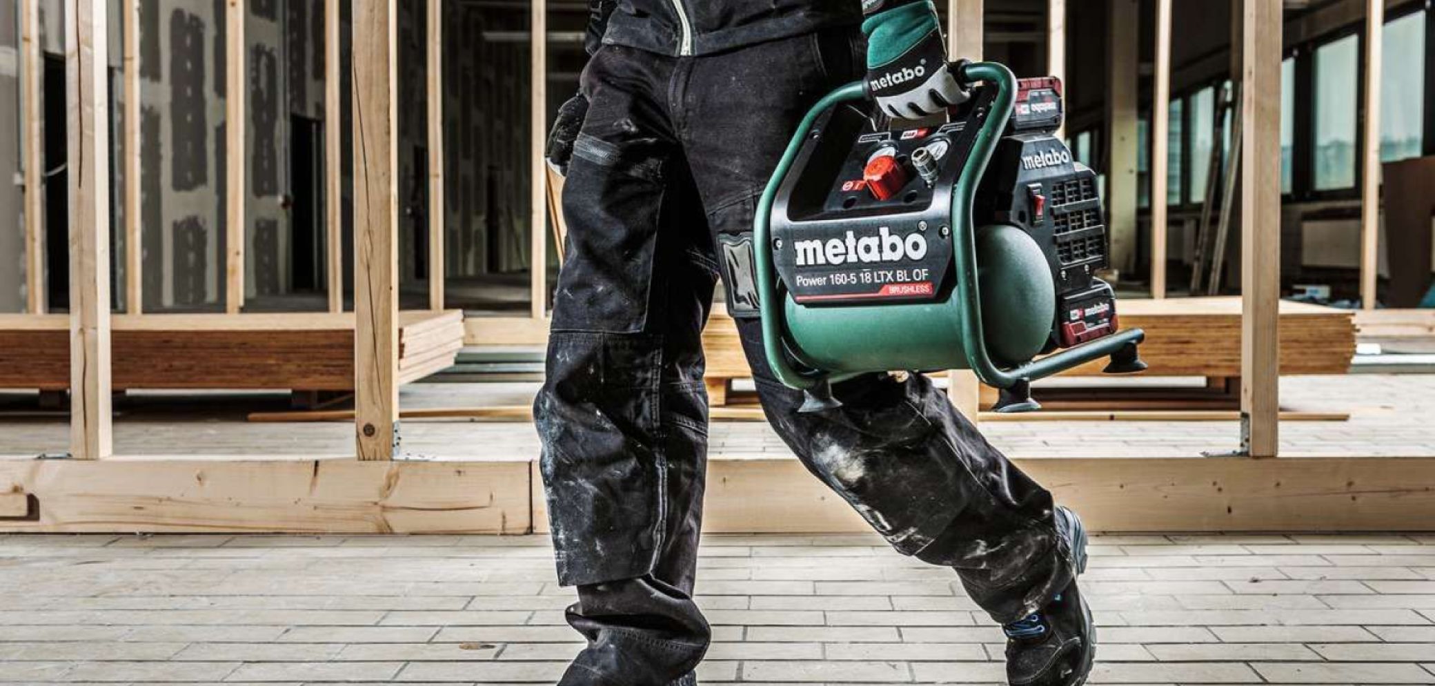 Schlauch ist nicht gleich Kabel: Das wissen alle, die mit Druckluftgeräten arbeiten. Beim neuen Akku-Kompressor «Power 160-5 18 LTX BL OF» von Metabo fehlt allerdings das Kabel, denn die kompakte Maschine läuft mit leistungsstarker Akku-Technologie. Der Akku-Kompressor ist laut Hersteller einer der ersten 18-Volt-Kompressoren im Profi-Segment, und er ist dank weniger als zehn Kilogramm inklusive Akkupack leicht und kompakt.