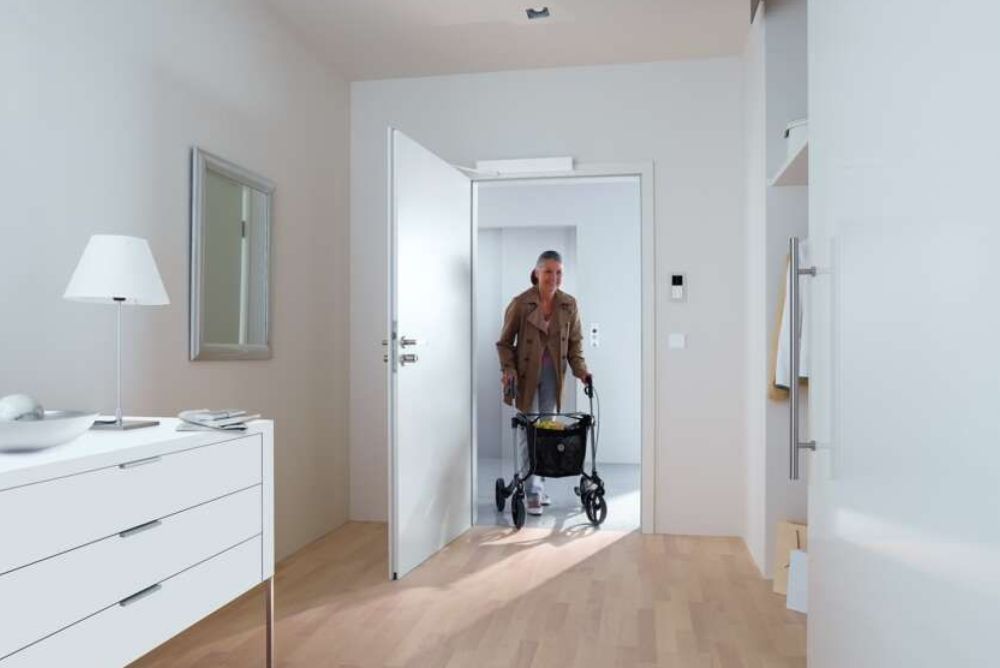 Generell favorisiert die SIA 500 eine automatisierte Türöffnung. Und dabei vorzugsweise eine Schiebelösung. Während automatisch öffnende Drehtüren wegen des Schwenkbereiches auch Risiken bergen, sind motorisierte Schiebelösungen über jeden Zweifel einer Eignung zur Barrierefreiheit erhaben. Die Beschlaghersteller haben darauf reagiert und eine Reihe von technischen Lösungen auch zur Nachrüstung von Schiebetüren auf den Markt gebracht. Für die handwerkliche Ausführung von automatisierten Türen gibt es inzwischen vielfältige Möglichkeiten. So kann die Ansteuerung des Öffnungsvorganges etwa über Radarbewegungsmelder, über Funk und mobile Auslöser, einen Taster, Sensoren oder einfach einen gewöhnlichen Schalter erfolgen.
