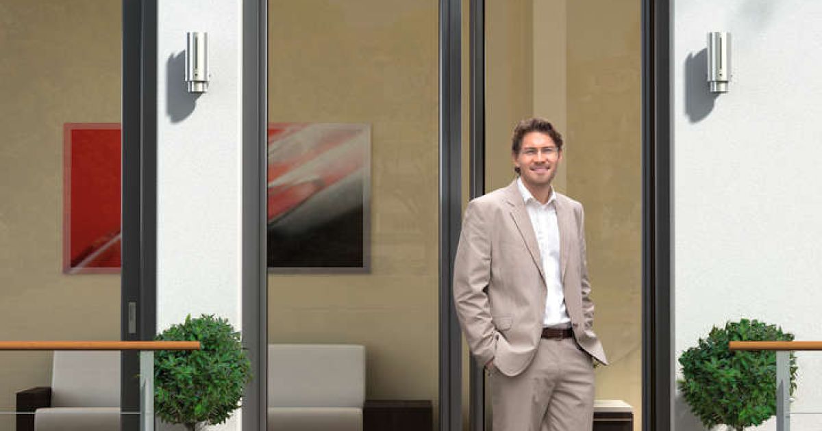 Die Holz-Alu-Grossflächentür «Jumbo Line» von Unilux wurde so konzipiert, dass Höhen bis zu 3 m sowie ein Flügelgewicht bis 300 kg, dank massiver «Power Hinge»-Bänder, realisierbar sind. Dabei kommt die Tür ohne störendes Oberlicht aus und kann im Einklang mit anderen Grossflächen eingeplant werden. Ein weiteres Ausstattungsmerkmal ist der unsichtbare Drehbegrenzer, der bei einer Öffnung von 90° automatisch den Flügel abstoppt und somit die Türbänder schont. Aufgrund der Festigkeit des Glases und der sicheren Fixierung der Bauteile ist eine grosse Stabilität gewährleistet.