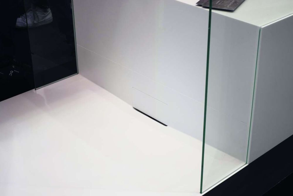 Der Mineralwerkstoffverarbeiter Hasenkopf präsentierte neue Lösungsvarianten für die Ausführung von Duschtassen. Das Duschsystem besteht aus Corian und kann exakt auf die jeweiligen Gegebenheiten und die persönlichen Wünsche der Kunden abgestimmt werden.