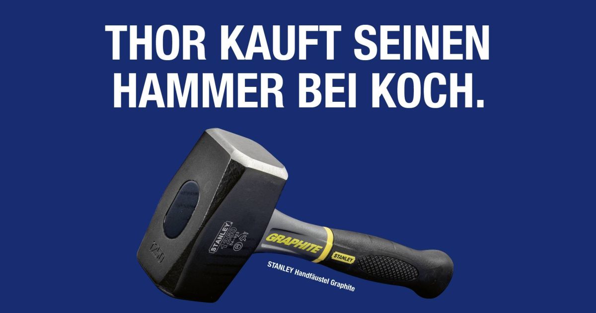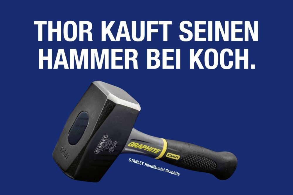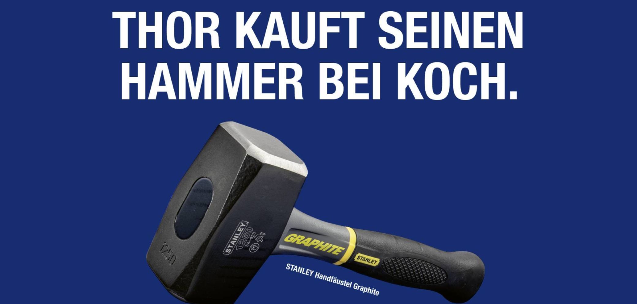 Begleitet wird die Einführung des Onlineshops durch eine augenzwinkernde Kampagne. Dabei wird aufgezeigt, dass der Koch Onlineshop für echte Profis gemacht wurde. Ob Batman, James Bond, Mr. Grey oder Thor – Profis aus ganz unterschiedlichen Bereichen kaufen ihr Equipment bei Koch. Ist doch logisch.