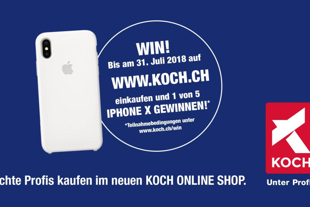 Wer bis am 31. Juli 2018 im Koch Onlineshop bestellt, gewinnt mit etwas Glück eines von fünf iPhone X im Wert von CHF 1'199 Franken!