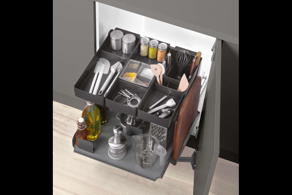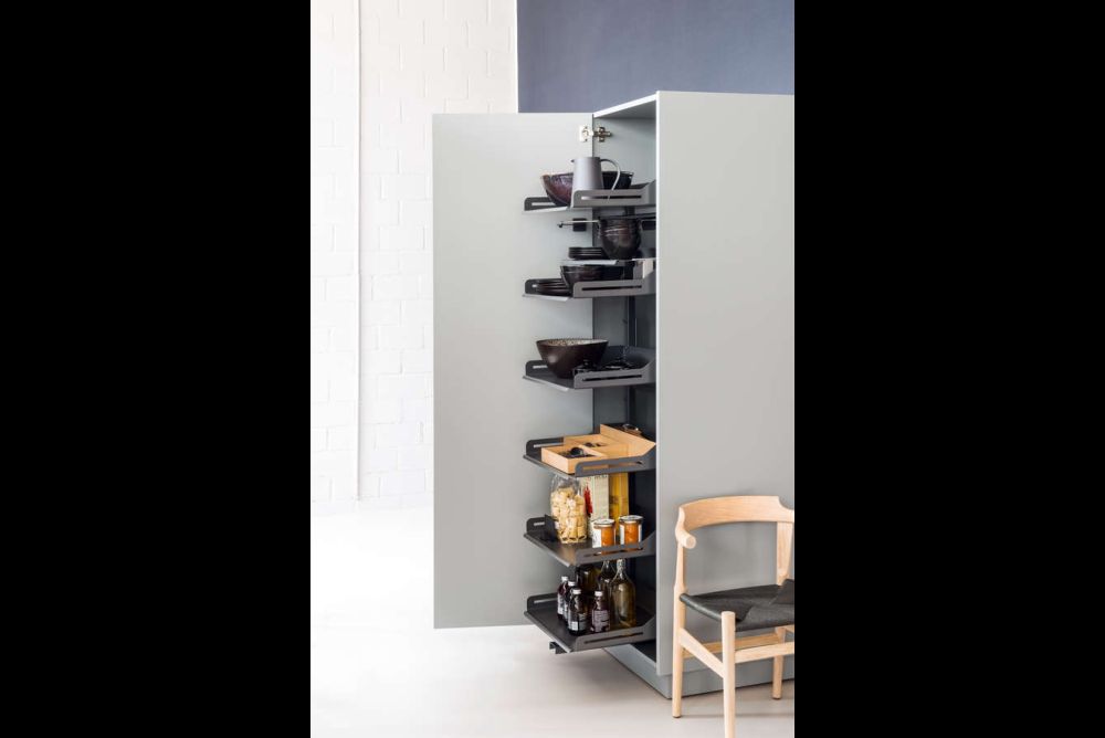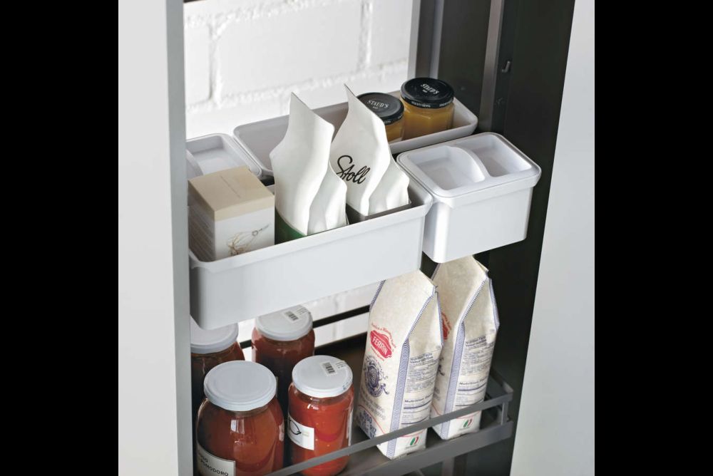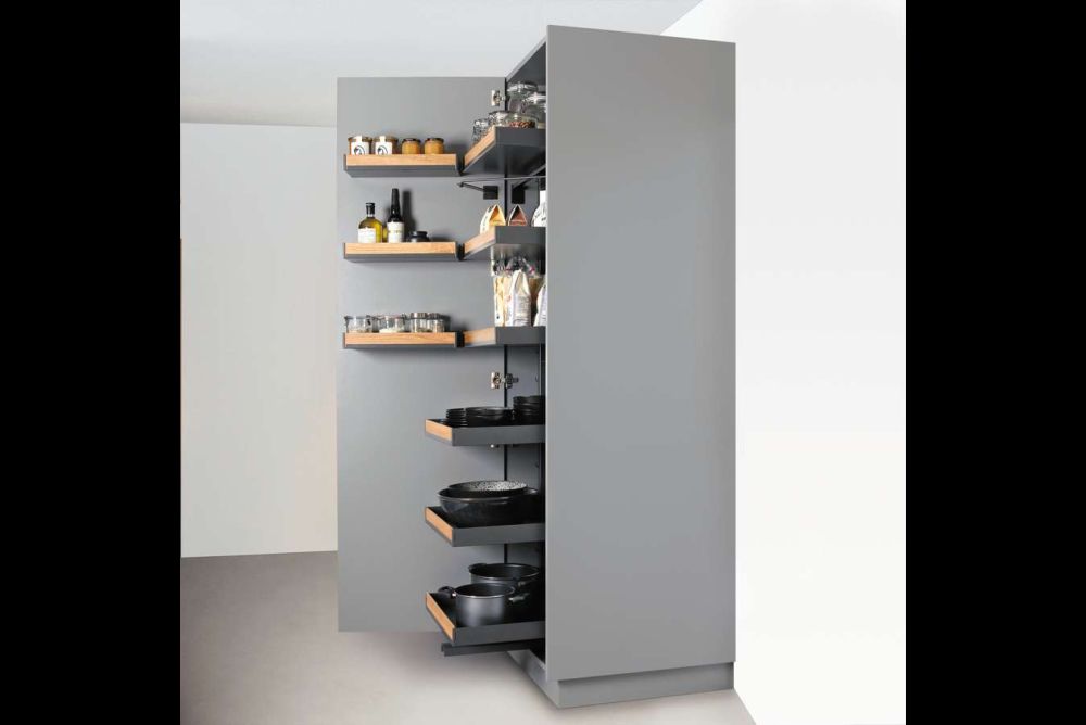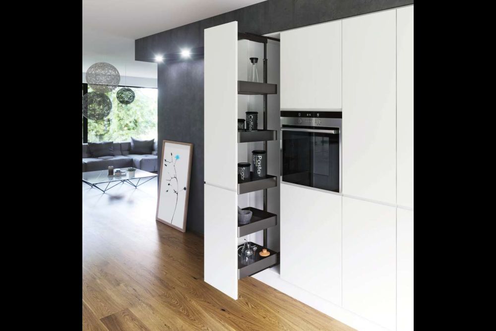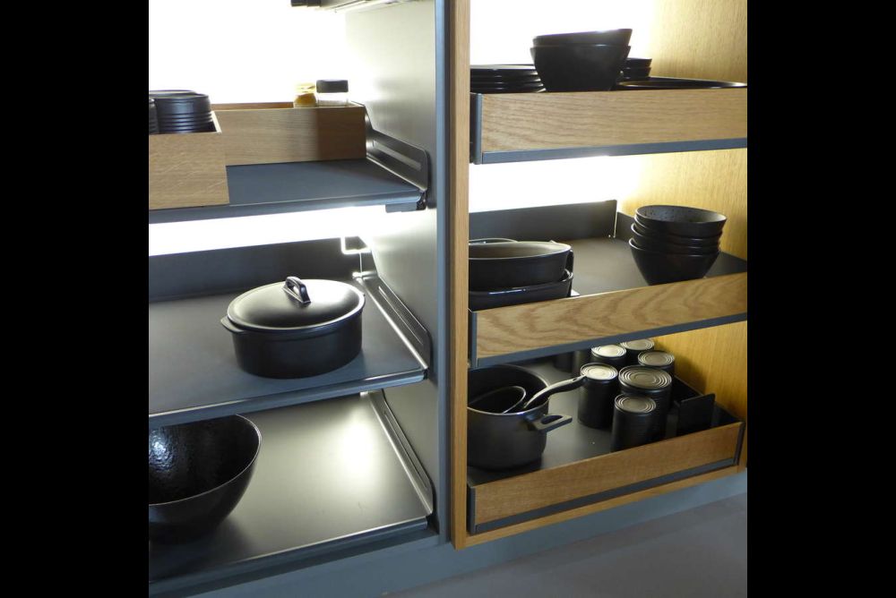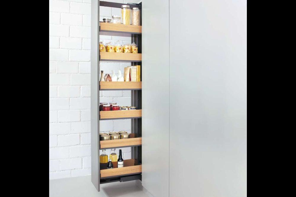 Funktionsauszüge. Das Innenleben von Küchen muss vermehrt höheren gestalterischen Ansprüchen genügen. Dabei sind durchgängige Systeme, die den vorhandenen Platz ausnutzen, im Vorteil. Vier Beispiele aus Blech zeigen, was möglich ist.