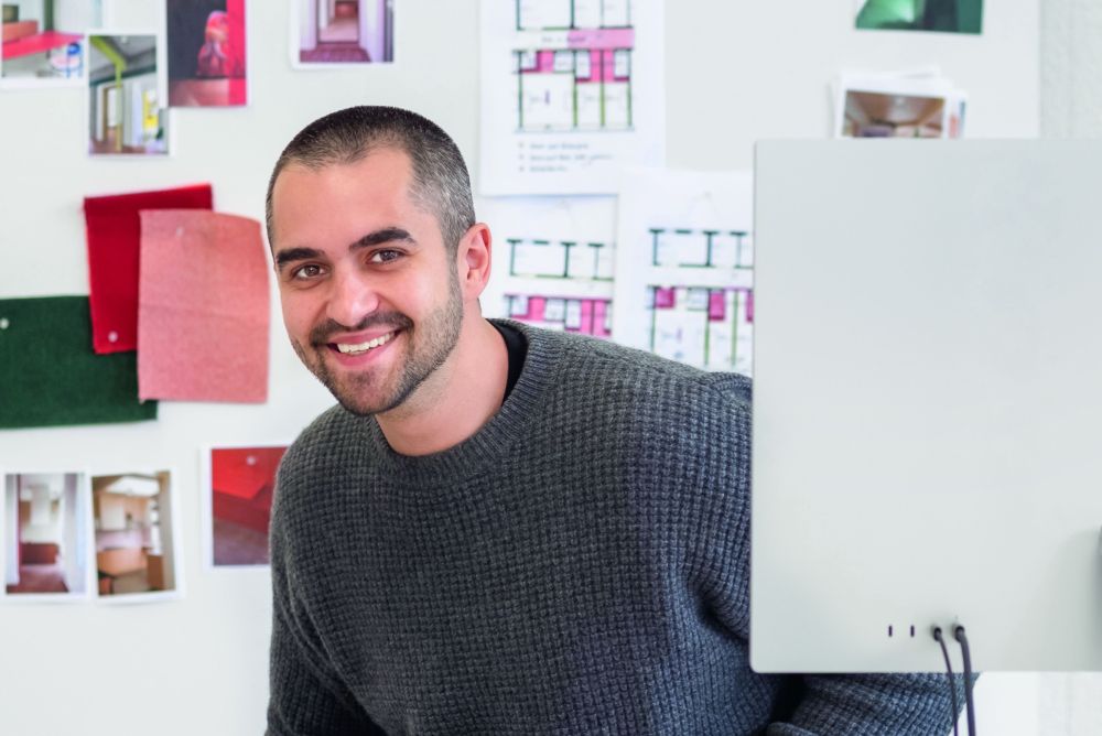 Bei seiner Arbeit als Innenarchitekt verbindet der gelernte Schreiner Luca Steger (31) Handwerk und Gestaltung. Bild: Fabio Rutishauser