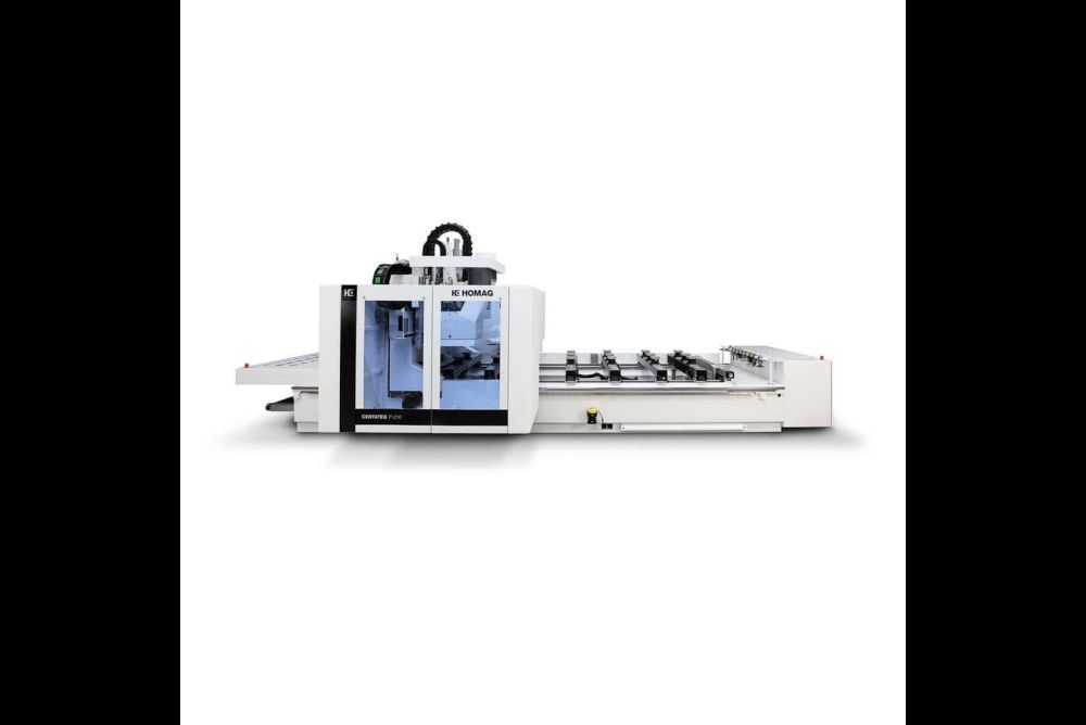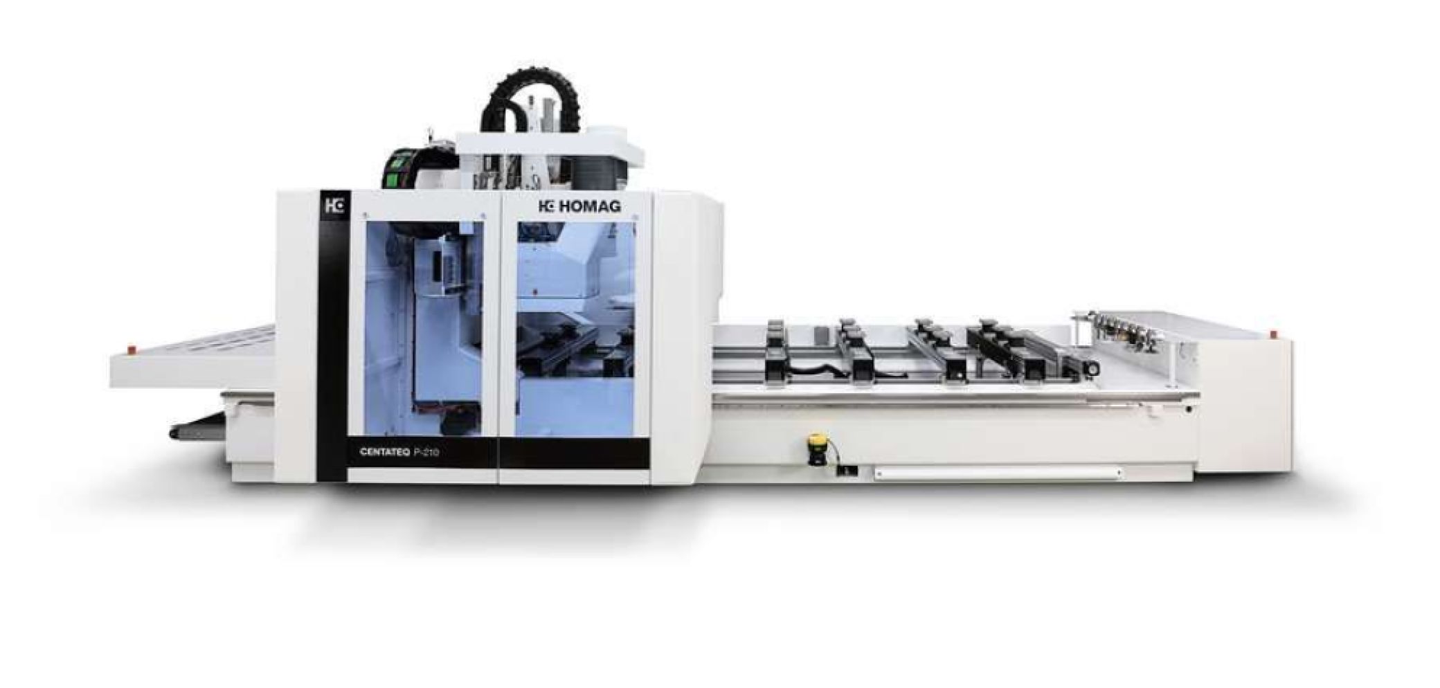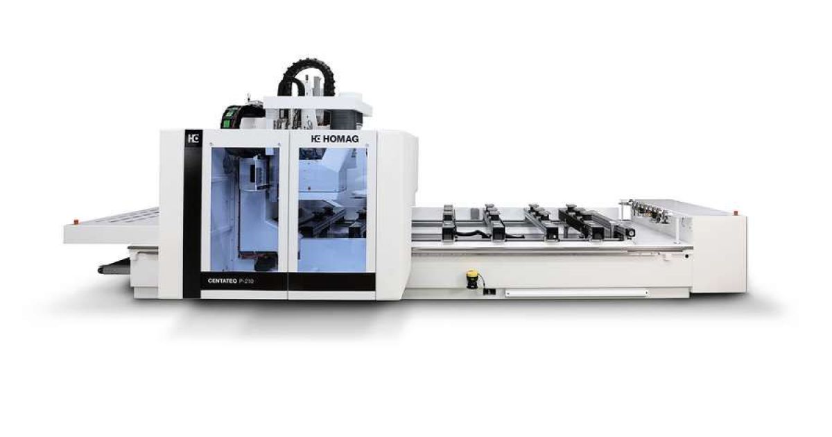 Die CNC-Maschinenbaureihe «Centateq P-210» von Homag hat eine Ausstattung, die laut Hersteller in dieser Leistungsklasse nicht üblich ist: Eine Portalbauweise mit beidseitigem Antrieb, die getrennte Anordnung von Bohrgetriebe und Frässpindel mit zwei unabhängigen Z-Achsen, eine dynamische Feldaufteilung für den Pendelbetrieb und das Zweikreis-Vakuumsystem mit Doppel-Lippen-Technik für stufenlose Verstellung der Spannmittel.