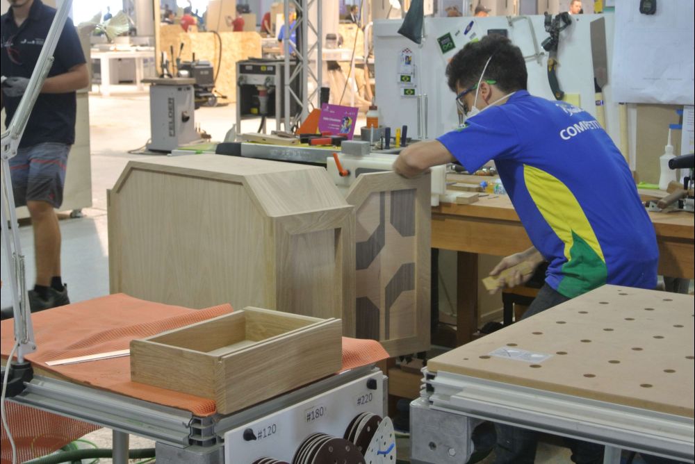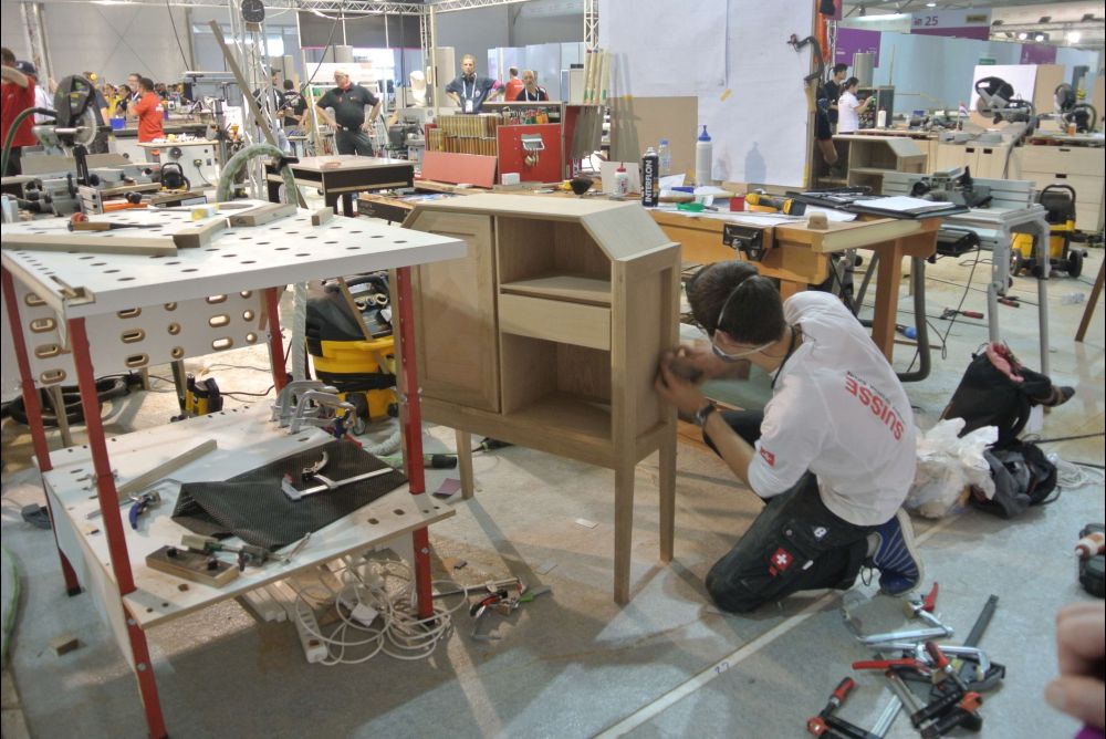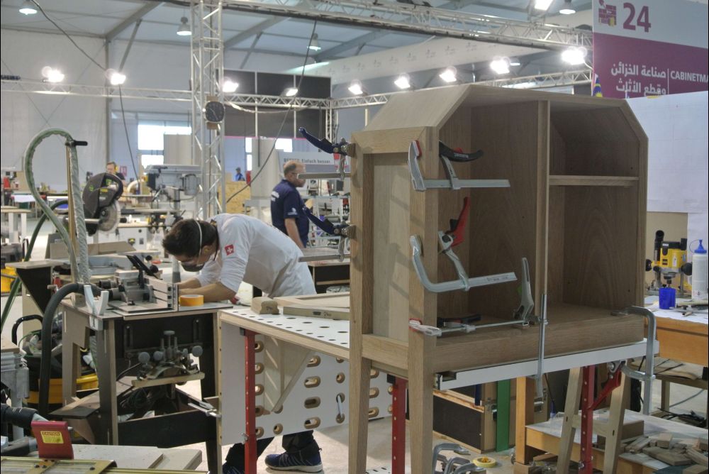 World Skills Abu Dhabi 2017. Vierter und letzter Wettkampftag der Berufsweltmeisterschaften in Abu Dhabi. Fabio Holenstein (Massivholzschreiner) und Sven Bürki (Möbelschreiner) behalten in der heissen Phase die Nerven.
