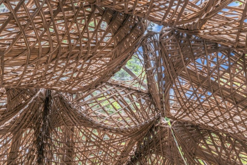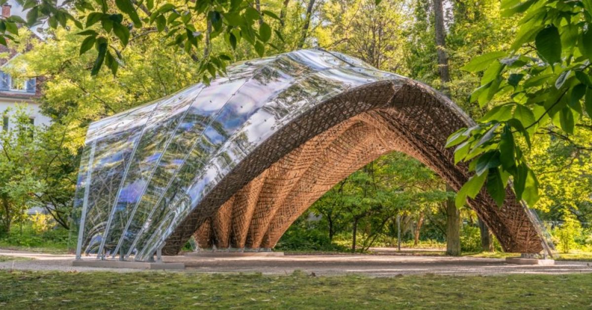 Naturwerkstoff. Im botanischen Garten in Freiburg (D) steht ein Pavillon, dessen tragende Struktur aus robotisch gewickelten Flachsfasern besteht.