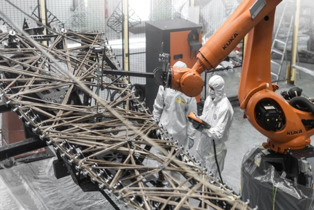 Das Projekt baut auf über zehn Jahren Forschung zum Bauen mit Faserverbundkonstruktionen auf. Die bisherige Forschung konzentrierte sich auf synthetisch hergestellten Faserverbundwerkstoffe wie Glas- und Kohlenstofffasern und deren Planung und Fertigung durch modernste computerbasierte Fertigungsmethoden. Das «livMatS»-Projekt erweitere nun diese Forschung im Hinblick auf eine nachhaltigere Bauweise mit Flachsfasern und untersuche den Einsatz dieser Naturfasern in einer Anwendung im grossen Massstab, schreibt die Universität Stuttgart weiter. «Die tragenden Elemente werden mit einem kernlosen Wickelverfahren aus Flachsfasern hergestellt. Bei diesem additiven Fertigungsverfahren werden Faserbündel von einem Roboter präzise auf einen Wickelrahmen gelegt. So können die Orientierung, Ausrichtung und Dichte der Fasern gezielt gesteuert und architektonisch ausgebildet werden.»