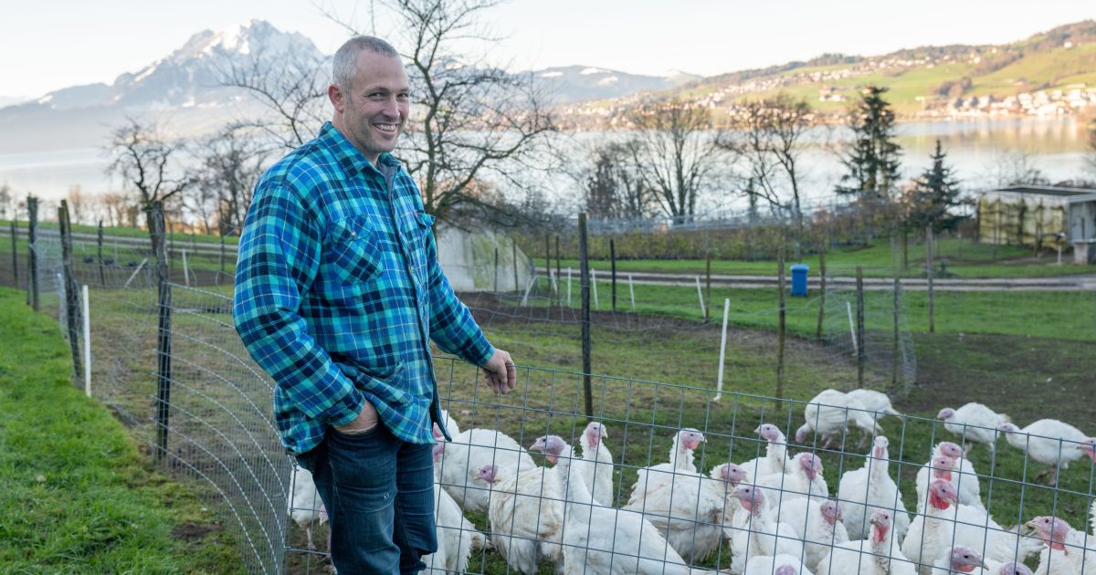 Da das Fleisch von Ferkeln sehr fetthaltig sei, habe seine Mutter vor etwas mehr als 40 Jahren mit der Trutenzucht begonnen. «Damals hielten wir Gänse und Truten für die Selbstversorgung.» Muheim ist mit vier Schwestern und zwei Brüdern auf dem Bühlhof, am Fuss der Rigi aufgewachsen. «Mein Grossvater, ein Urner aus Unterschächen, kam vor 82 Jahren mit der Familie hierher, da war mein Vater einjährig.» Heute lebt Muheim mit seiner Frau und den drei Söhnen auf dem Hof und führt den Betrieb in dritter Generation. Begonnen hatte er seine berufliche Laufbahn mit der Kantonsschule, entschied sich aber nach drei Jahren für eine Schreinerlehre. Danach folgte die RS und dann ein Bauernlehrjahr. Die Muheims halten elf Milchkühe. Im Sommer sind die Kühe auf der Alp Surenen im Urnerland. Auf dem Bühlhof gibt es auch Beeren: Himbeeren, Brombeeren, Johannisbeeren, Stachelbeeren und Jostabeeren. «Im Hofladen sind die Beeren als Brotaufstriche, Sirup und Likör erhältlich.» Seit einigen Jahren fänden sogar Kunden aus Ländern wie Kuwait seinen Hof, sagt er lachend. «Dank der Beerentafel an der Hauptstrasse nach Weggis.»