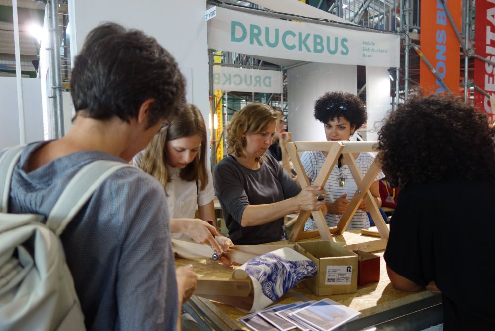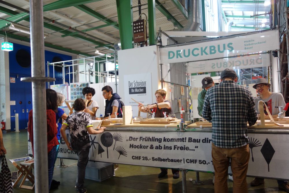 Diese Messe-Werkstatt entstand in Kooperation mit der Muba und dem Siebdruckatelier Druckbus. Ziel dabei war es, das Handwerk sowie den Rohstoff Holz den Besuchern näher zu bringen und sie für die Qualitätsarbeit der Schreiner zu sensibilisieren. «Den Besuchern hat es riesigen Spass gemacht selbst schleifen, leimen und schrauben zu können», berichtet Cyrill Hämisegger von Jacoby. Pro Tag wurden in der neun Meter langen Produktionsstrasse um die 30 sogenannte «Muba-Chairs» angefertigt.