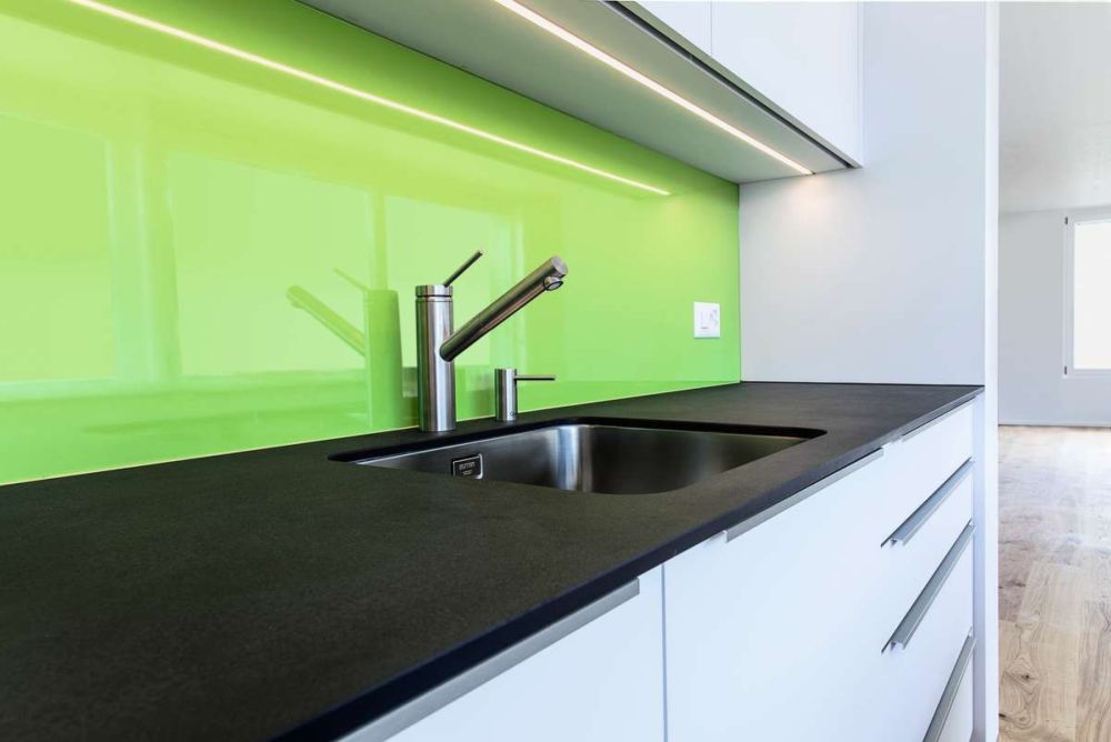 Die Werkstoffhersteller entwickeln ihre Produkte immer weiter, und so kommen auch im Küchenrückwand-Bereich laufend Lösungen hinzu. «Neue Materialien sollten immer zuerst intern geprüft werden», rät Hanspeter Zbinden, denn: «Eigenschaften wie die Hitze- und Feuchteverträglichkeit sowie die Kratzerunempfindlichkeit sind elementar für den erfolgreichen Einsatz.» Zudem müssen die Materialien gut und einfach zu reinigen sein. Farblich stehen die Schweizer Kunden momentan auf die klassische weisse Rückwand. Aber auch Erd- und Grautöne kommen vermehrt zum Zug.