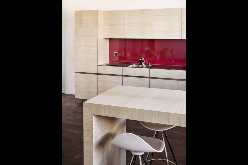 Schaut man verschiedenen Küchen bewusst auf die Rückwand, wird man erstaunt feststellen, wie gross deren Einfluss auf das Erscheinungsbild des gesamten Raumes ist. Trotzdem wird die Rückwand meist erst ganz am Ende des oft drei- bis vierstündigen Verkaufs- und Planungsgesprächs mit der Kundschaft thematisiert und noch schnell ausgesucht. «Zu diesem Zeitpunkt sind alle Beteiligten müde und die Entscheidungen fallen nicht mehr so klar aus», sagt Hanspeter Zbinden, Geschäftsführer der EK Küchen AG aus dem aargauischen Hunzenschwil. «Deshalb machen wir beim Verkaufs- gespräch nur eine Grobstudie und treffen die Entscheidung anschliessend in einem zweiten Schritt direkt auf der Baustelle gemeinsam mit unseren Kunden.» Durch die Grobstudie kann der Planer die Auswahl vorgängig einschränken und gleich passende Muster mit auf die Baustelle nehmen. Zudem kann auf diese Weise die Wirkung des Materialmusters direkt vor Ort angeschaut werden. «Diesen Arbeitsschritt kann der Schreiner einfach mit einem Termin für die Massaufnahme verbinden», sagt Zbinden. Diese Vorgehensweise minimiert auch allfällige Reklamationen betreffend eines falschen Musters oder differenzierter Farbeinschätzungen.