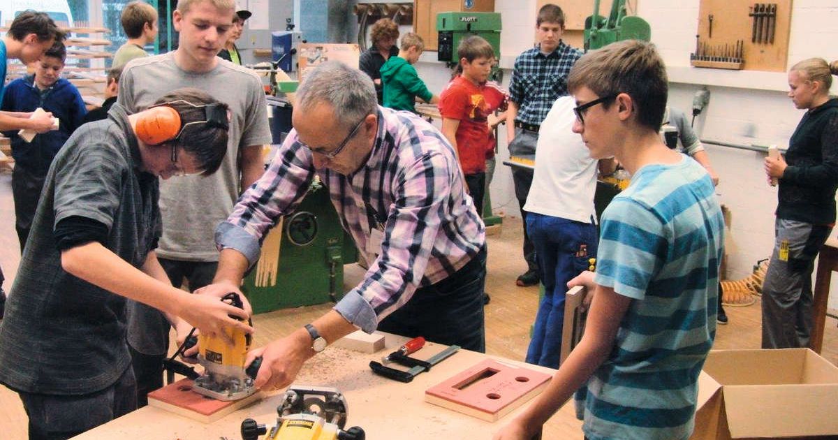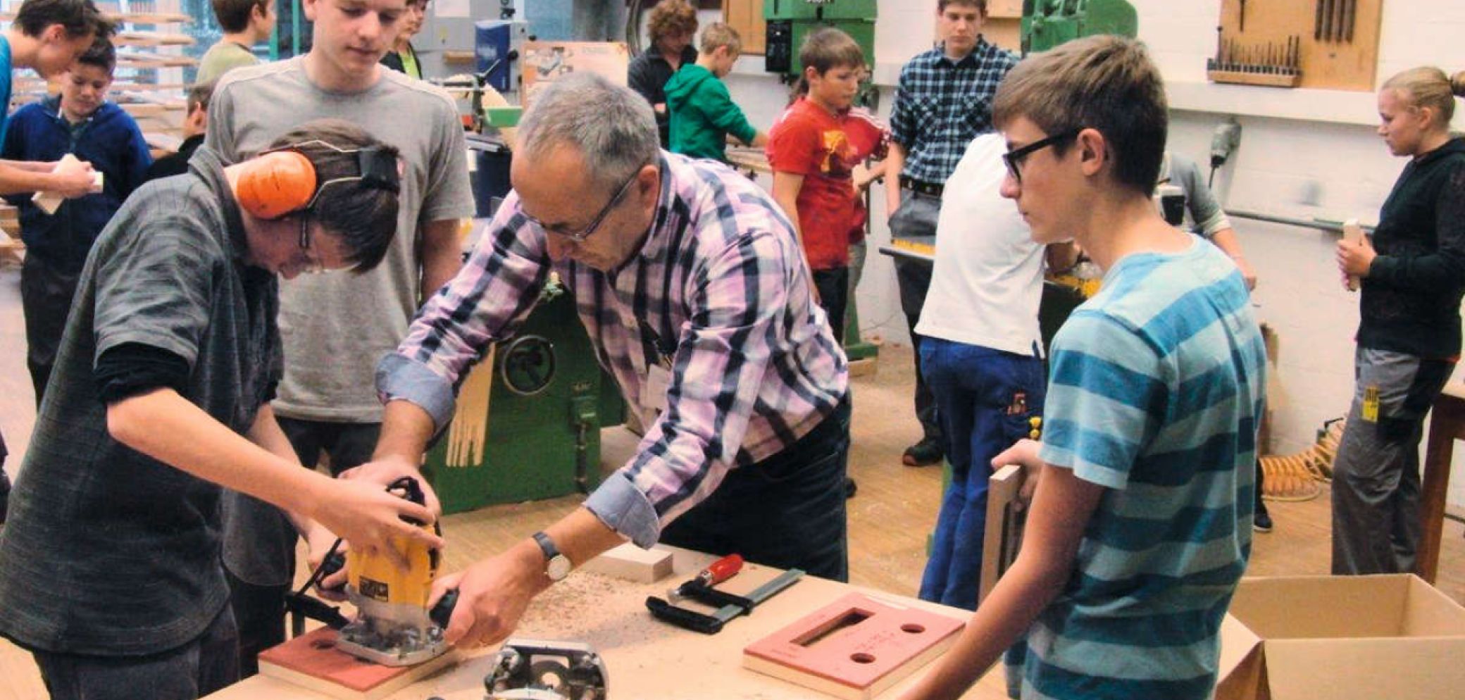 42 Schülerinnen und Schüler haben an einem Praxishalbtag im Sarner ÜK-Lokal den Schreinerberuf kennen gelernt. Entstanden war der Tag auf Initiative der Berufsfachschullehrer vom Berufs- und Weiterbildungszentrums des Kantons Obwalden (BWZ Obwalden) und der VSSM-Sektion Unterwalden. Die Schülerinnen und Schüler stellten eine Schreibtischablage aus Nussbaumholz und schwarzem MDF her. Unterstützt wurden sie dabei von zwölf Schreinerlernenden, Berufsschullehrern und ÜK-Leitern.