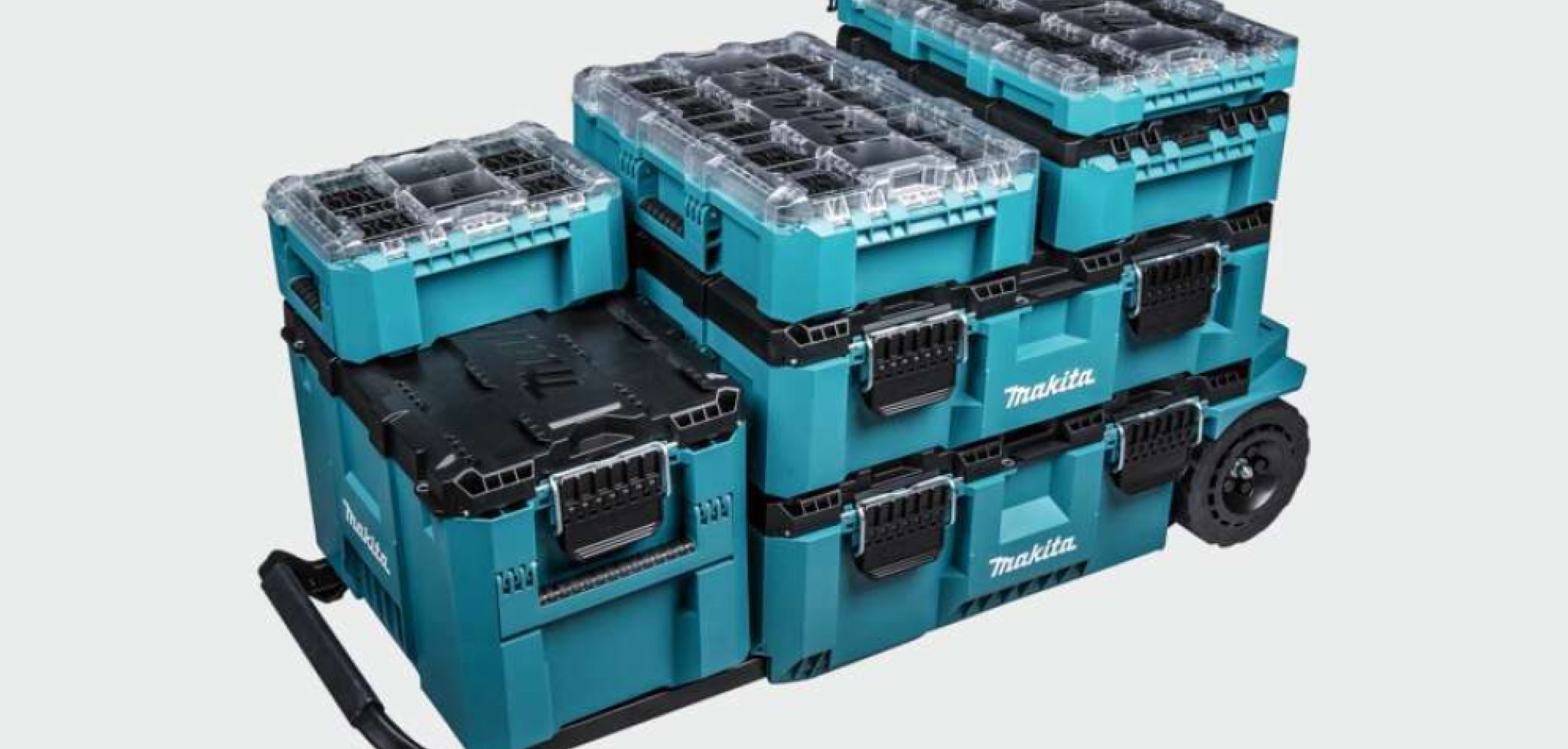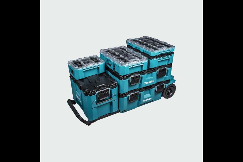 Mit dem «Maktrak»-Koffersystem von Makita werden laut Hersteller Transport und Organisation von Werkzeugen deutlich vereinfacht. Ob auf der Baustelle oder in der Werkstatt – das modular auf- gebaute System bietet eine strukturierte Übersicht und ermöglicht einen schnellen Zugriff auf die benötigten Arbeitsmittel. Schnellverschlüsse und Koffer in verschiedenen Grössen erlauben eine Konfiguration, die sich an unterschiedliche Einsatzbereiche anpassen lässt. Das «Trak Mount Lid System» mit Einhand-Verschluss ermöglicht ein unkompliziertes Stapeln sowie den Zugriff von beiden Seiten, ohne dass zuvor andere Koffer entfernt werden müssen. Dies erleichtert den Umgang mit dem System insbesondere bei häufigem Werkzeugwechsel oder begrenztem Platz- angebot. Das Koffersortiment umfasst vier Werkzeugboxen in unterschiedlichen Grössen, darunter eine rollbare Werkzeugkiste als zentrales Element. Sie ist mit gummiertem Ausziehgriff und grossen Rädern ausgestattet und kann von beiden Seiten be- und entladen werden.