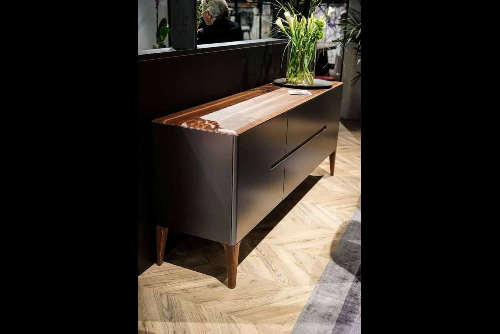 Das gekonnte Zusammenspielen von furnierten Flächen mit Massivholz sowie mit anderen Materialien kam stark zum Tragen. Dabei wurde auf auffallende Kontraste und Formen verzichtet. Schlichte kubische Formen, mit allenfalls ein paar wenigen gezielt platzierten Rundungen, verhalfen zu schlichter Eleganz, die es nicht nötig hat aufzufallen. Überhaupt zielten viele Neuentwicklungen darauf hin, formal verstanden zu werden sowie Geborgenheit und Ruhe zu vermitteln.