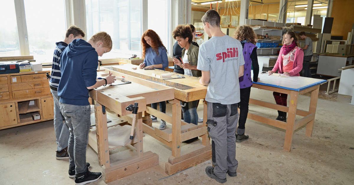 «Ich fand es extrem spannend, einen Tag in die Haut des Lehrlingsbetreuers zu schlüpfen und den Kindern den Schreinerberuf näherzubringen», erzählt Renato Spiegel begeistert. Er absolviert eine Lehre als Schreiner bei der Späti Innenausbau AG in Bellach. Soeben ging der nationale Zukunftstag über die Bühne und Renato konnte dabei die 12- bis 13-jährigen Mädchen und Jungen betreuen, die für einen Tag Schreinerluft schnuppern wollten.