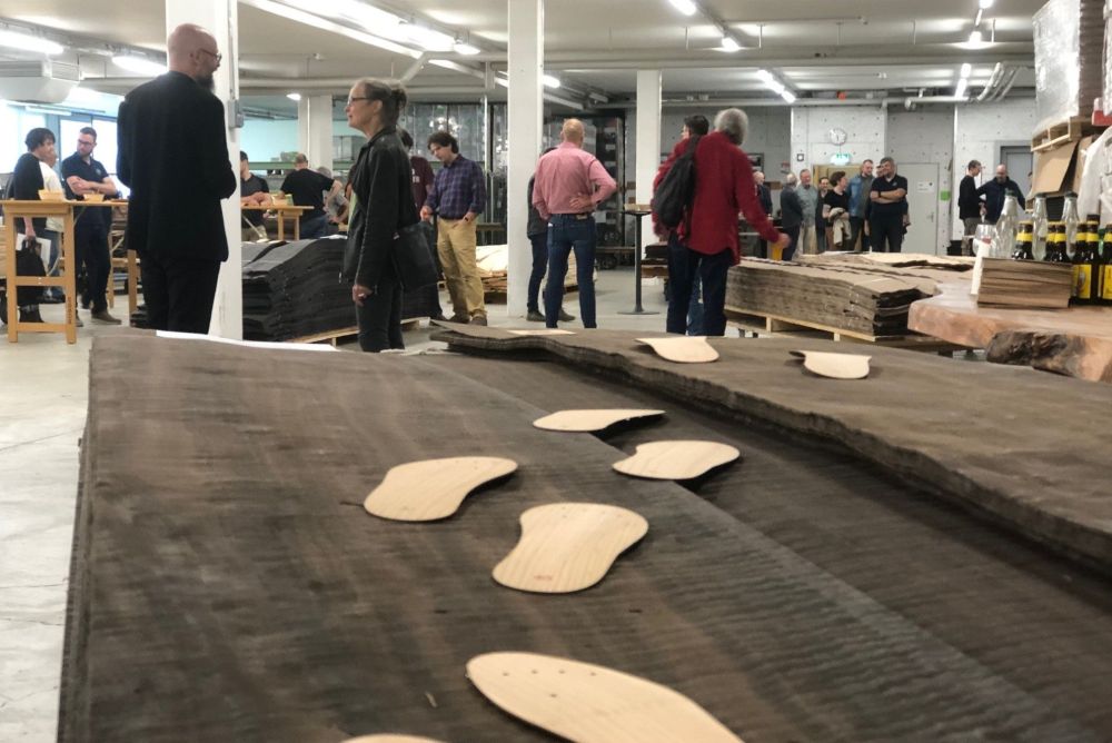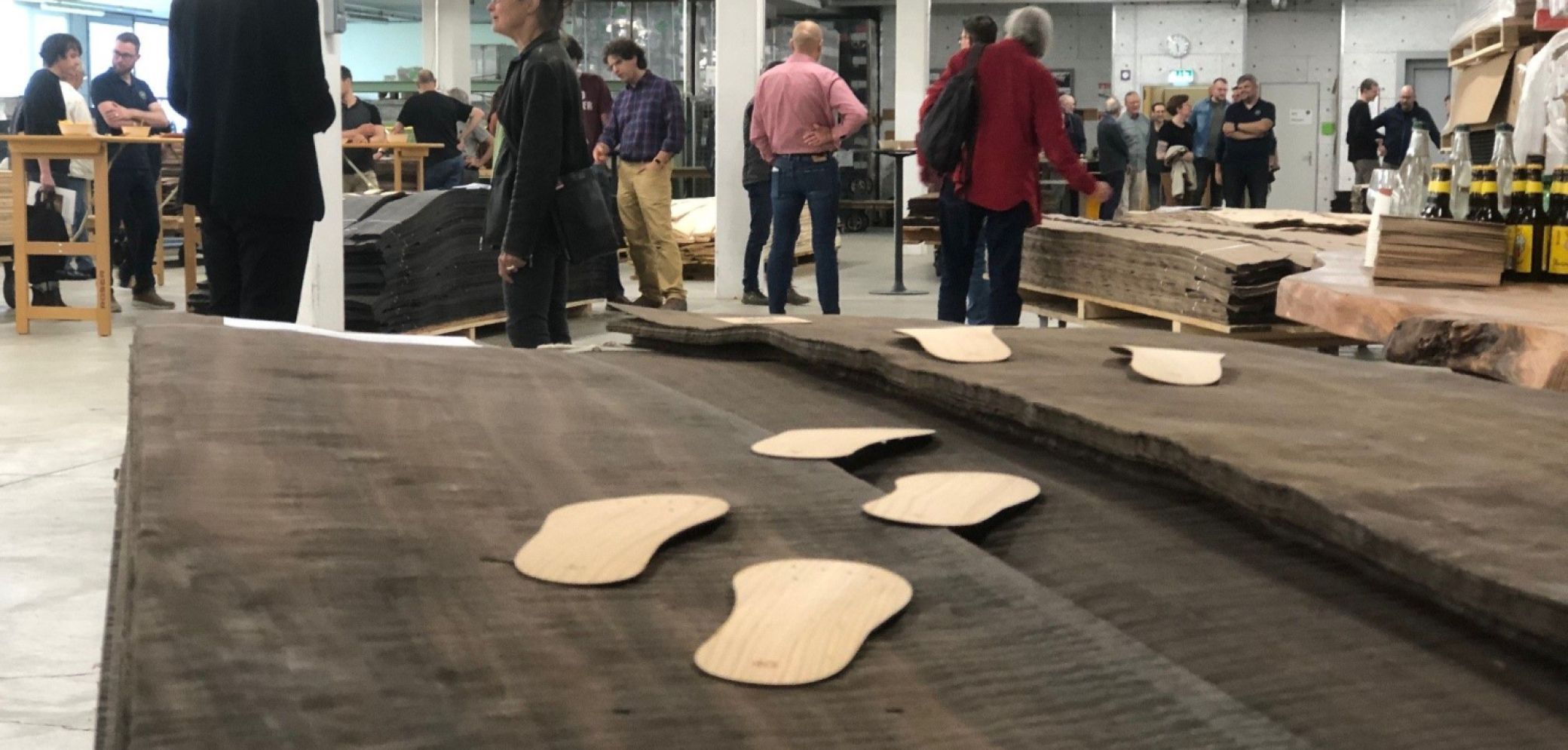 Der World-Craft-Talk füllte das Furnierlager der Roser AG und sorgte für einen spannenden Austausch. Bild: Noah Gautschi